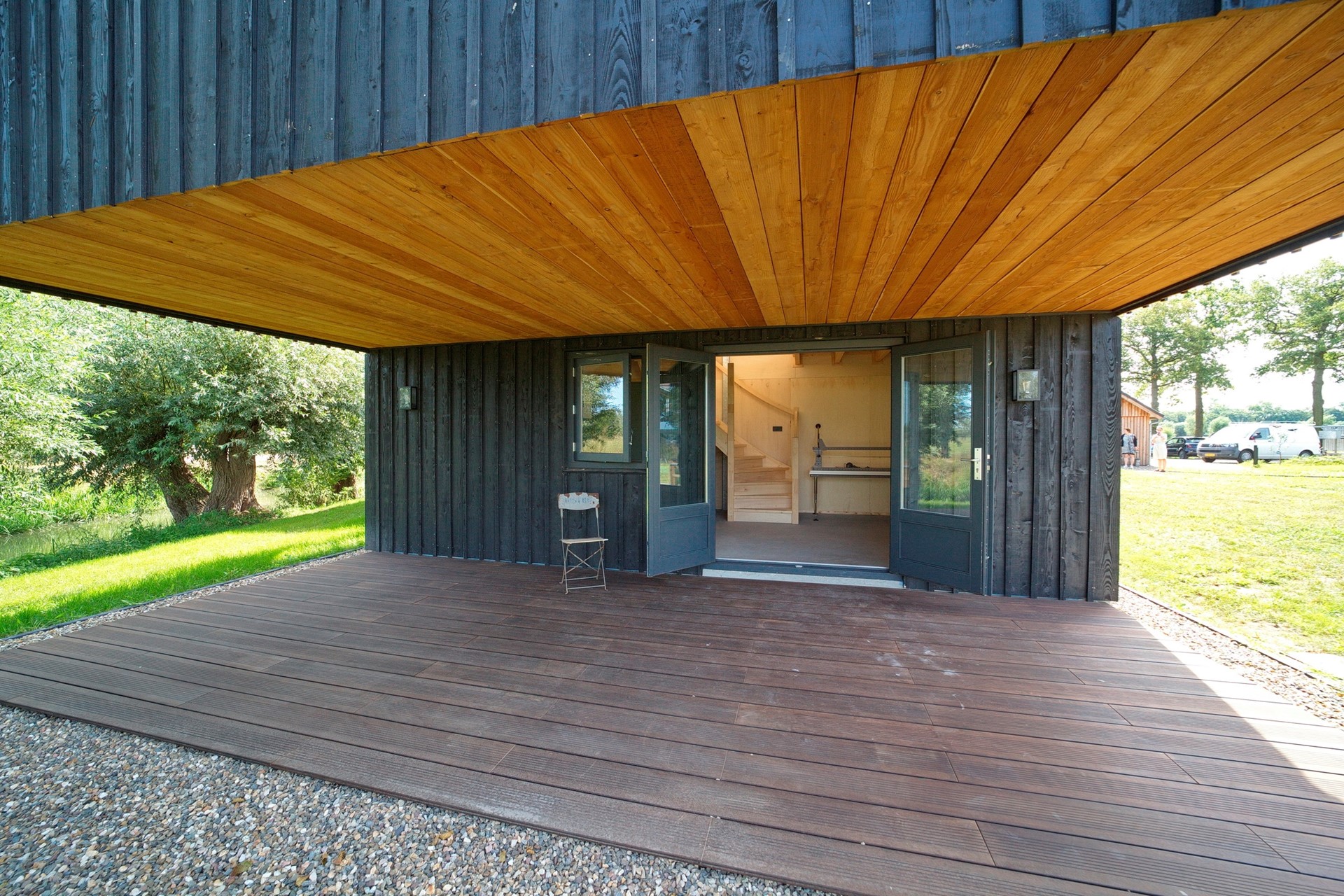 Het erf van “Broekweg Buiten” is beplant met hagen, fruit- en notenbomen. Een uitgekiende combinatie van geborgenheid en vrij uitzicht op waterpartijen, knotwilgen en weilanden. Kortom een prachtige plek; wie wil daar nu niet kantoor houden?