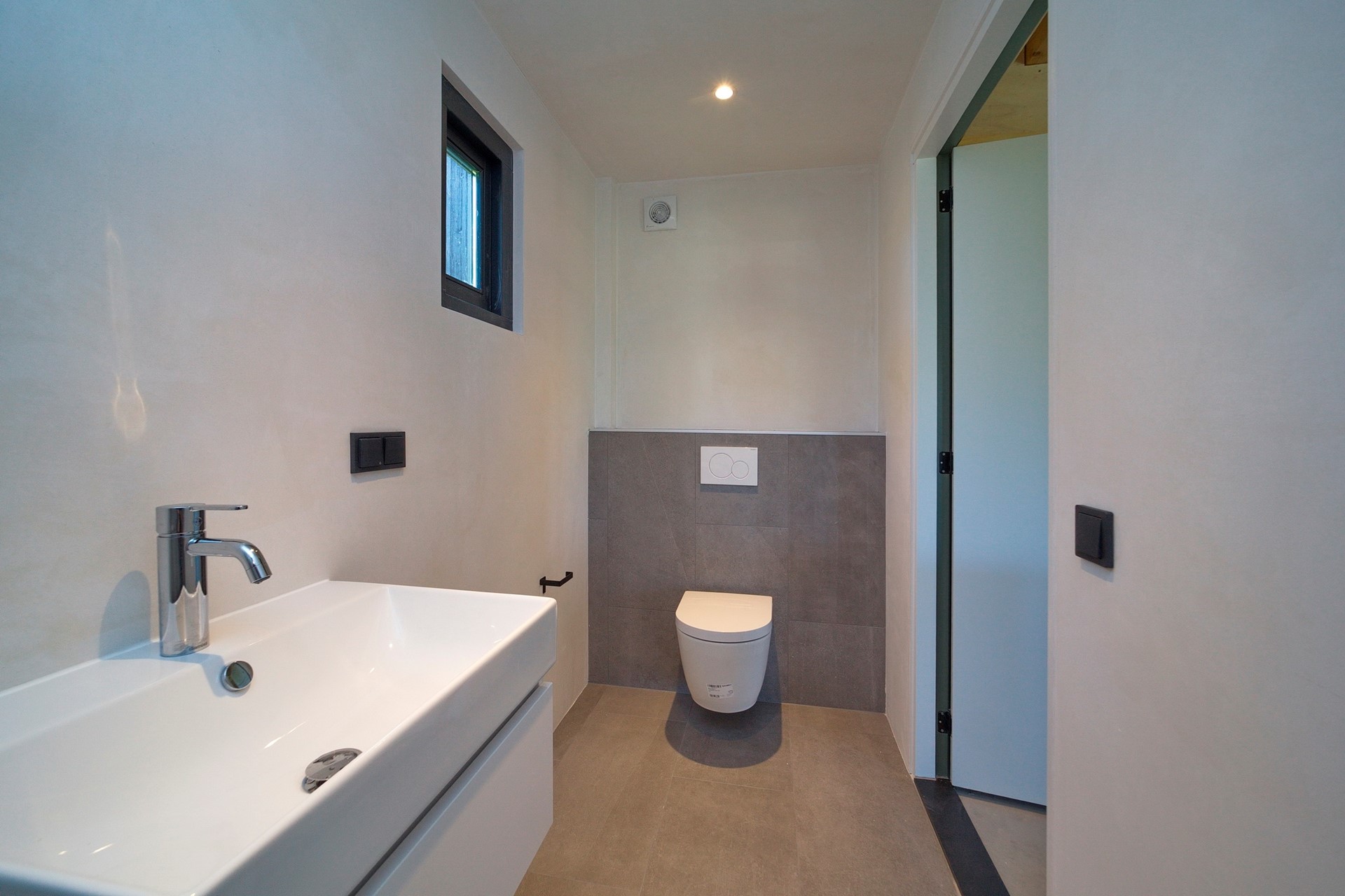 Entree: veranda van 27m2, een sfeervolle begane grond van 26 m2, waaronder de open werkruimte, de pantry, toilet, doucheruimte en trapopgang naar …..