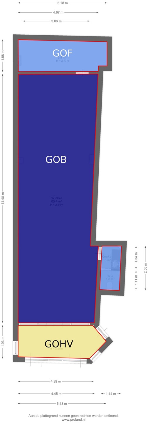 Huurprijs winkelpand ca 96,66m2 €2.400,- ex btw per maand