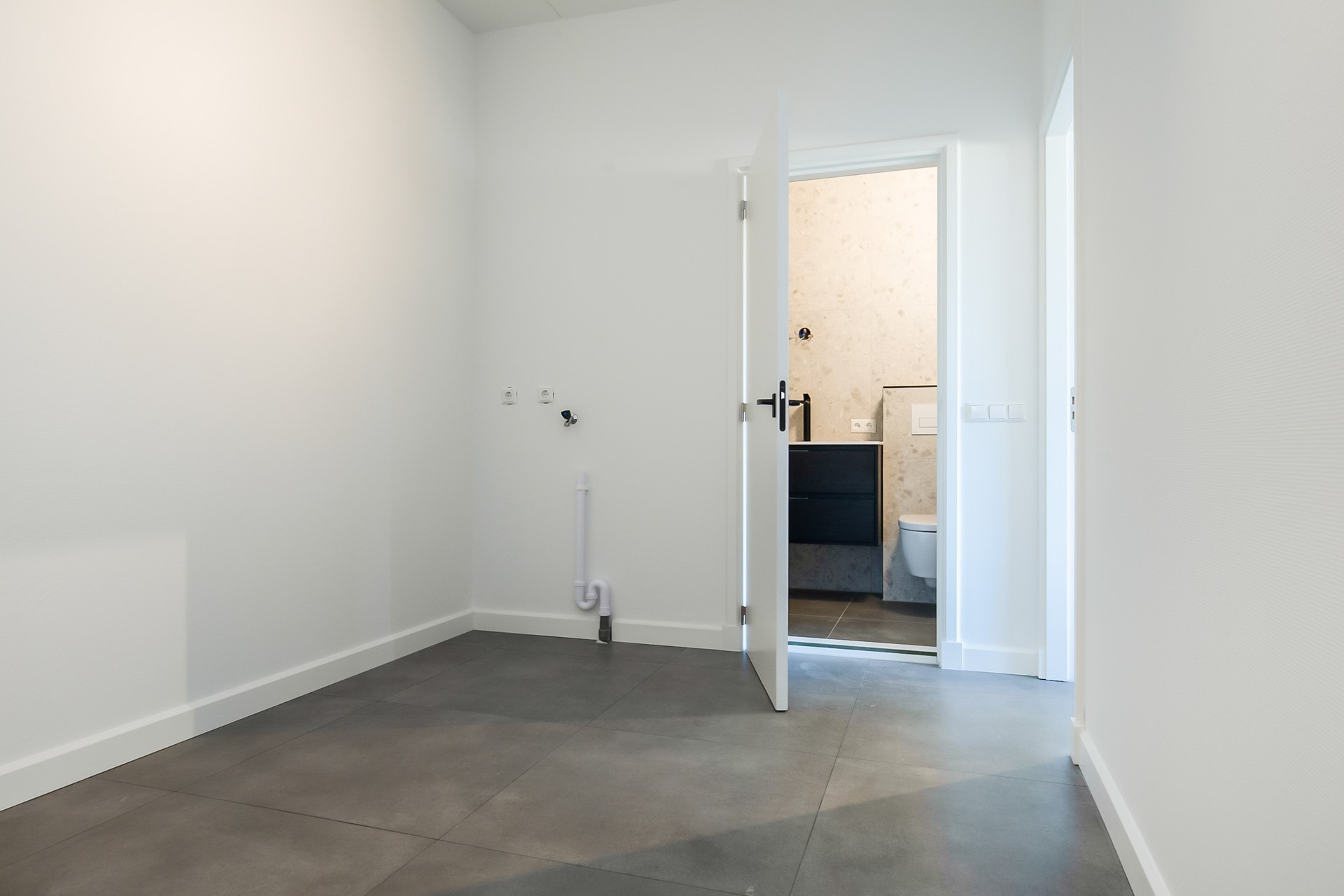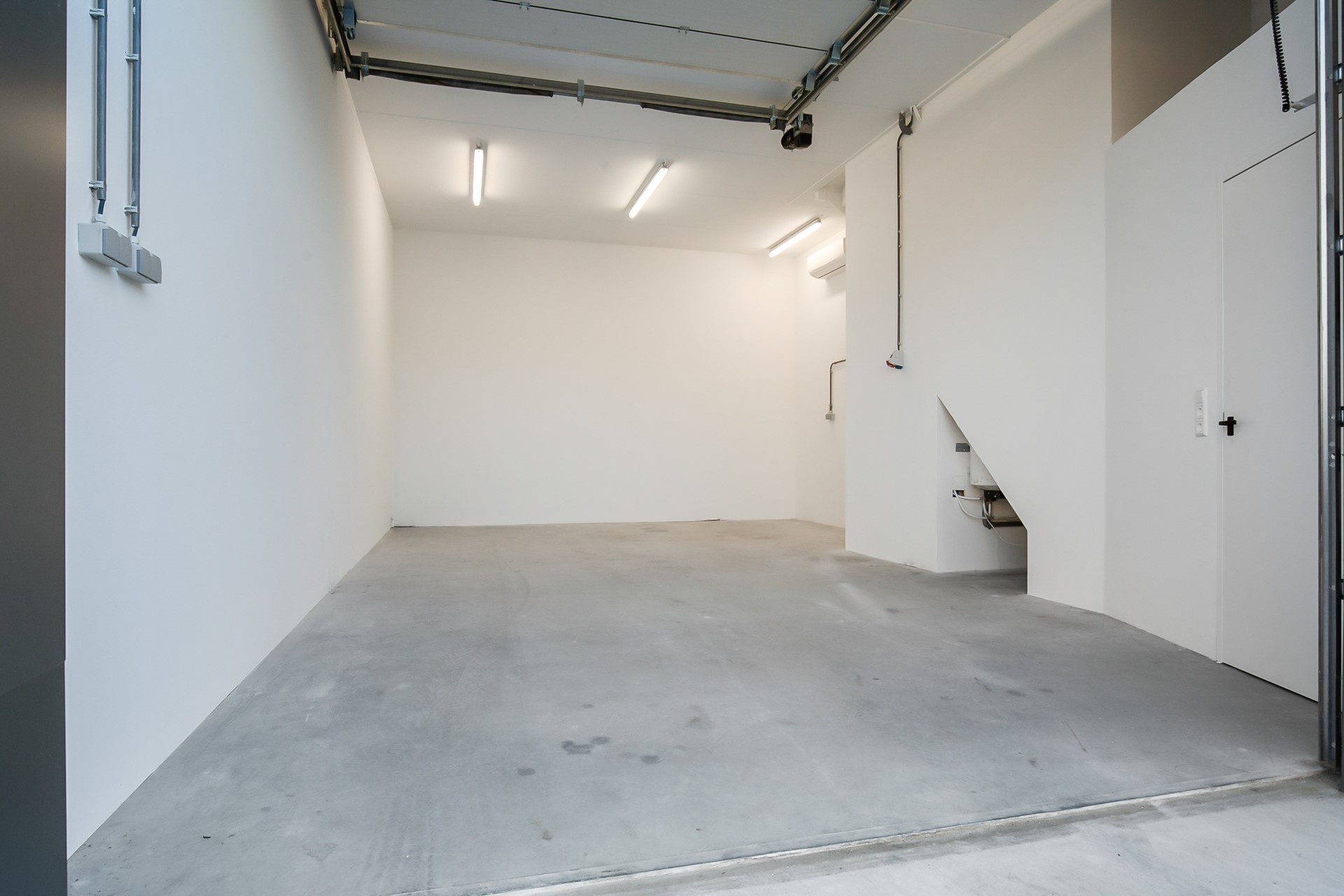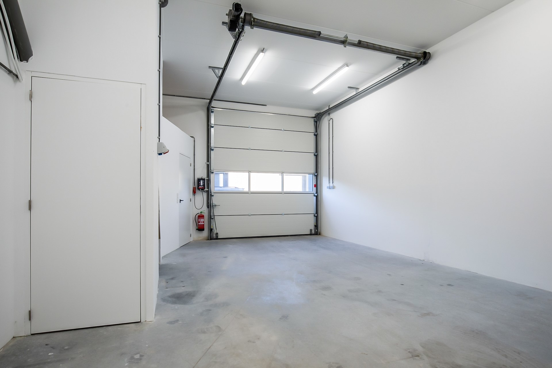 De begane grond beschikt over een ruime entree met toilet, een separate loopdeur en een overheaddeur van circa 3 meter breed en 3,5 meter hoog. Op de eerste verdieping bevindt zich een moderne badkamer met toilet, een kantine voorzien van luxe keukenapparatuur van Siemens (vaatwasser, combi-oven, koel-vriescombinatie en kookplaat), een ruime kantoorruimte en een extra separate kamer die ideaal kan dienen als werk- of archiefruimte. De volledige unit is recent behangen en geschilderd, waardoor deze direct gebruiksklaar is.