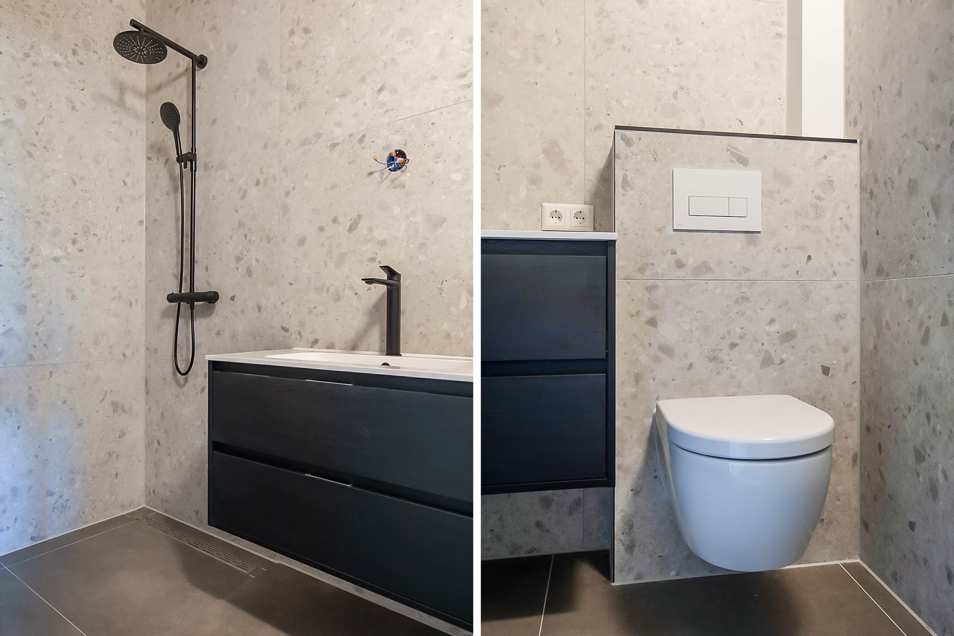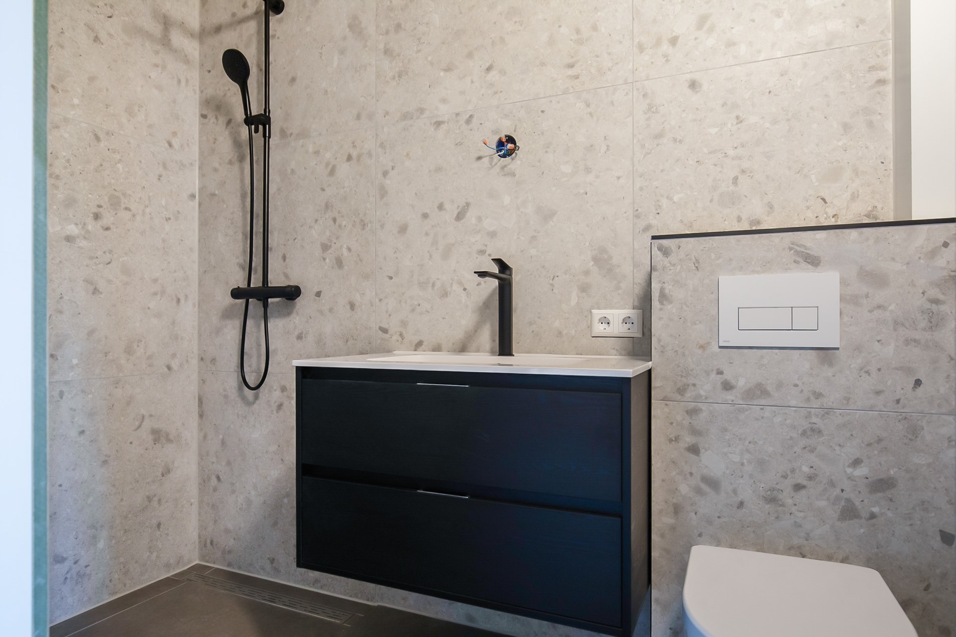 Naast de strakke afwerking is er ook veel aandacht besteed aan comfort en techniek. Zo is er gekozen voor twee krachtige Daikin-airco’s van 7,5 kW, waarmee zowel boven als beneden afzonderlijk kan worden gekoeld of verwarmd. De elektra is vernieuwd met een uitgebreide groepenkast en er zijn 380V-aansluitingen aanwezig.