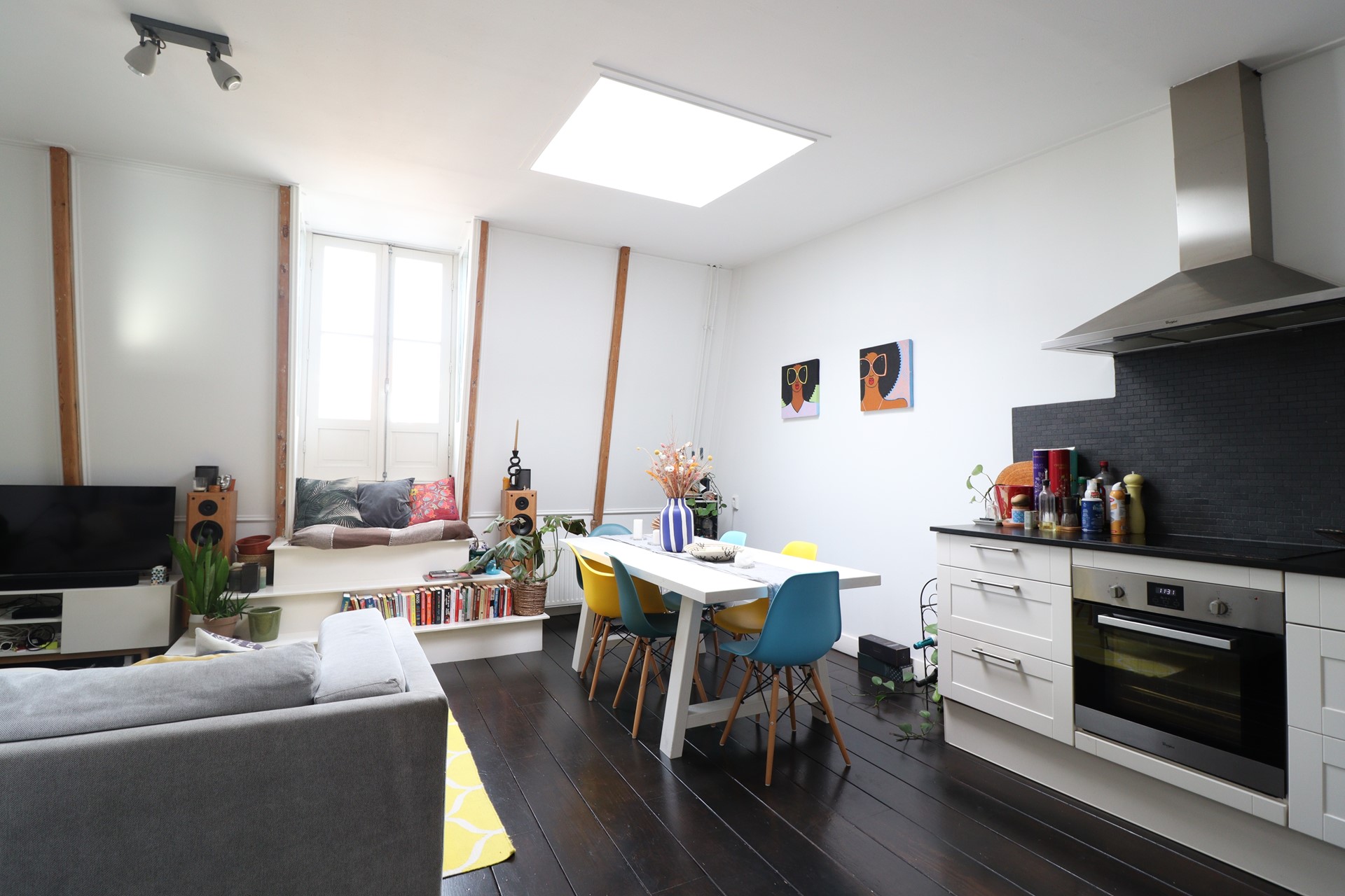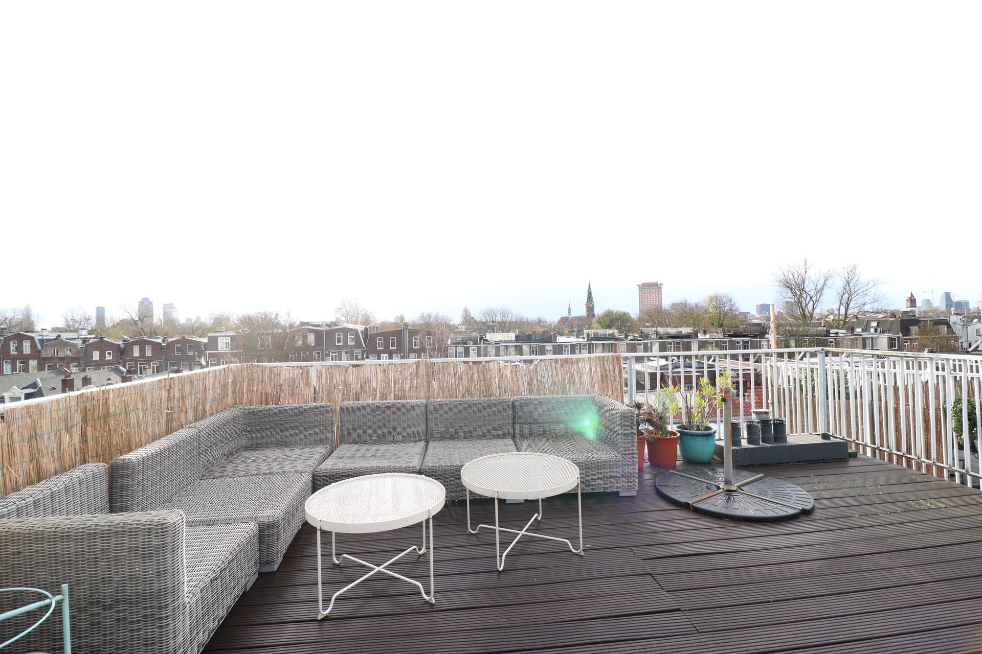 Spacious and bright fully furnished apartment with roof top terrace for rent at the Albert Cuypstraat in Amsterdam. The property is located on walking distance from shops, supermarket, bars and restaurants.. Located on a central location and easy to reach by public transport. With 2 bedrooms it is a good property for a single who works from home, or a couple. Sharing between friends / colleagues is not allowed in this apartment.