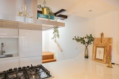 The athmosphere is a blend between modern style, luxury kitchen, spacious bathroom and the historical flavour of old, restored beams, orginal attic roof and beautiful wooden floor everywhere
