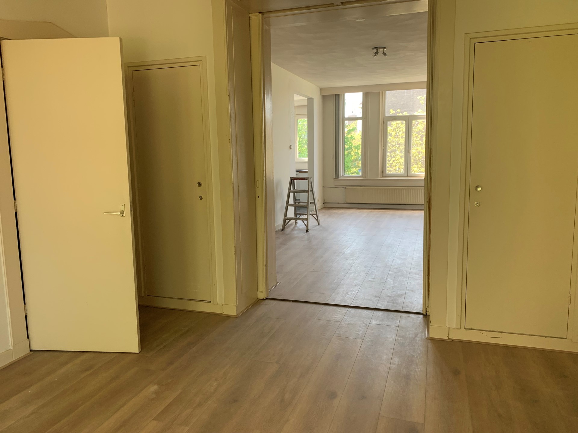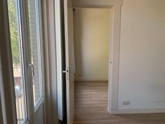 De woning betreden we via het trappenhuis. De twee trappen begeleiden ons vervolgens naar de voordeur van deze woning. De hal biedt toegang tot de badkamer die is voorzien van een luxe inloopdouche. Tevens biedt de hal toegang tot en de ruime woonkamer. De woonkamer is ruim en licht en kan worden opgesplitst door middel van de authentieke deuren en-suite. De woonkamer geeft op zijn beurt toegang tot het separate toilet, badkamer, slaapkamer en keuken, die is voorzien van moderne apparatuur. De badkamer is netjes voorzien van een luxe inloopdouche en de riante slaapkamer is gunstig gelegen aan de voorzijde van de woning.