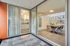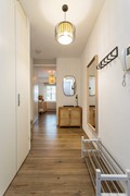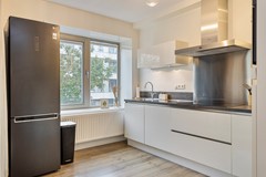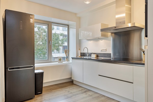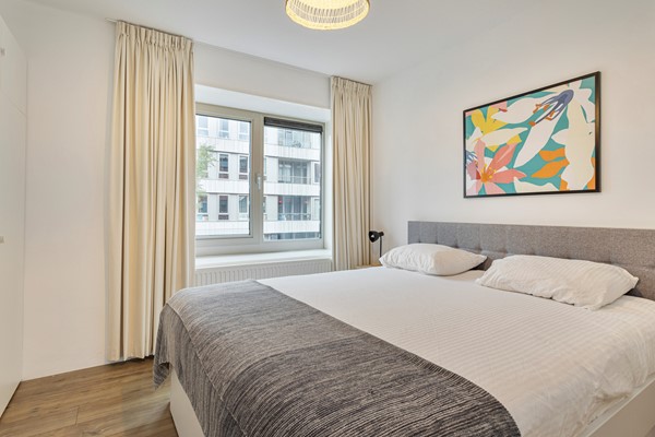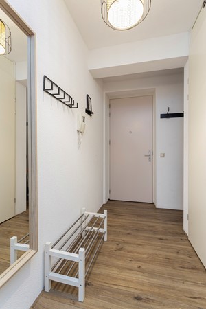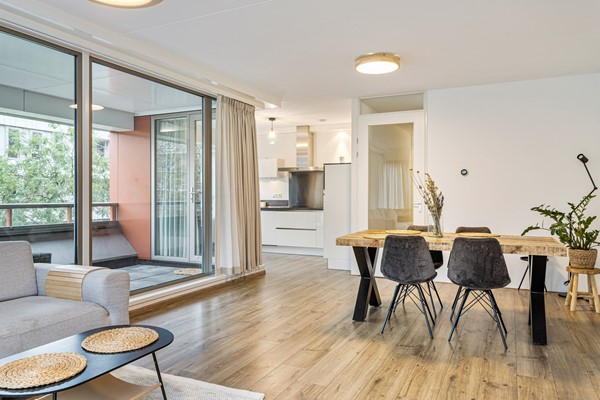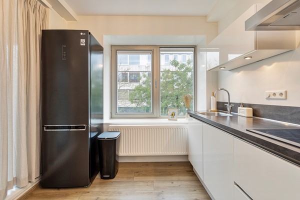 Communal entrance at street level with a well-maintained hall with a choice of stairs or elevator Upon entering there is a spacious hallway providing access to all areas. You find the stylish furnished living room with open kitchen. The living room has large windows with unobstructed views and access to the balcony. The kitchen is finished in high-gloss and is equipped with built-in appliances.
