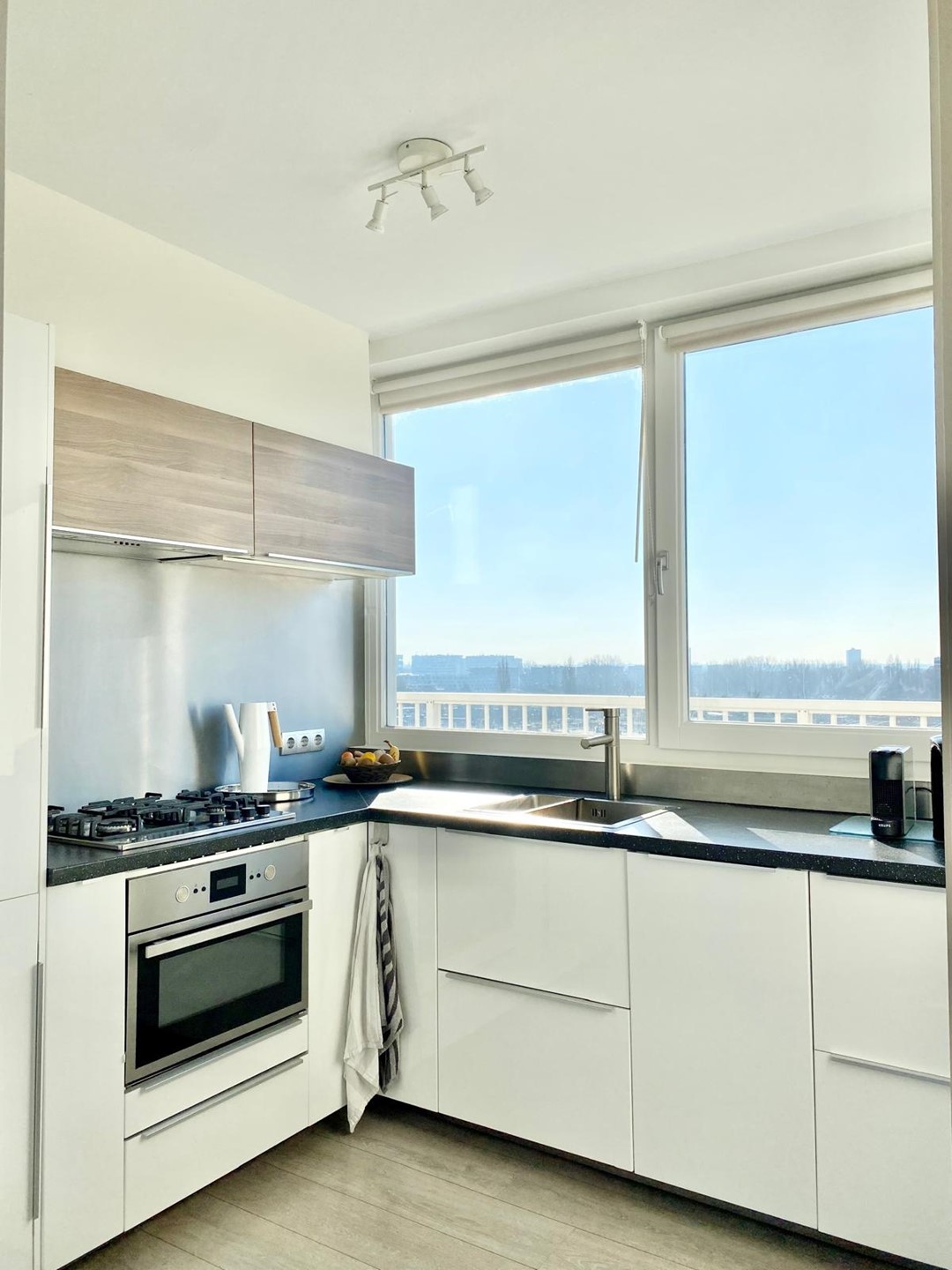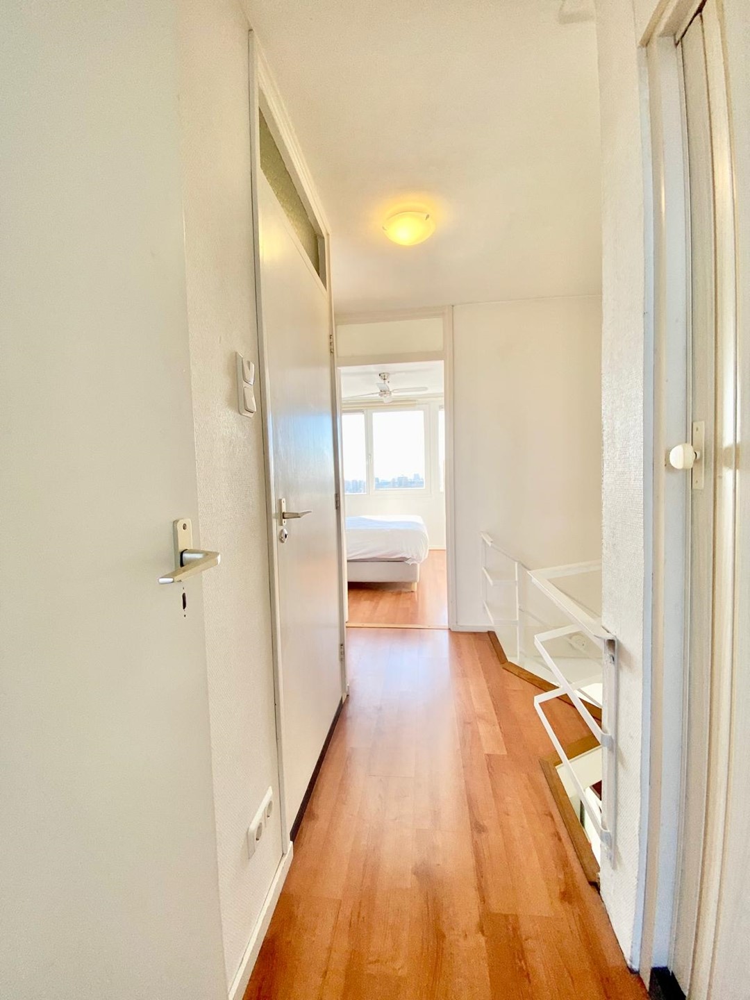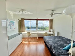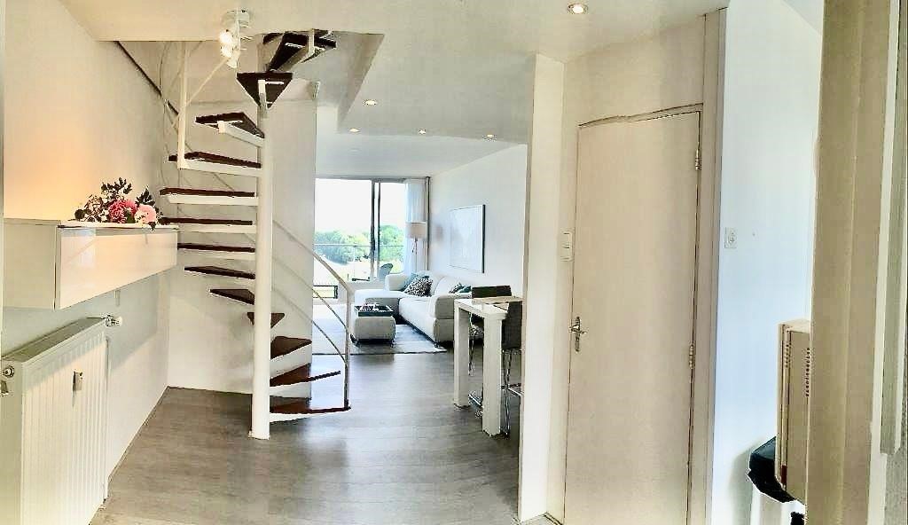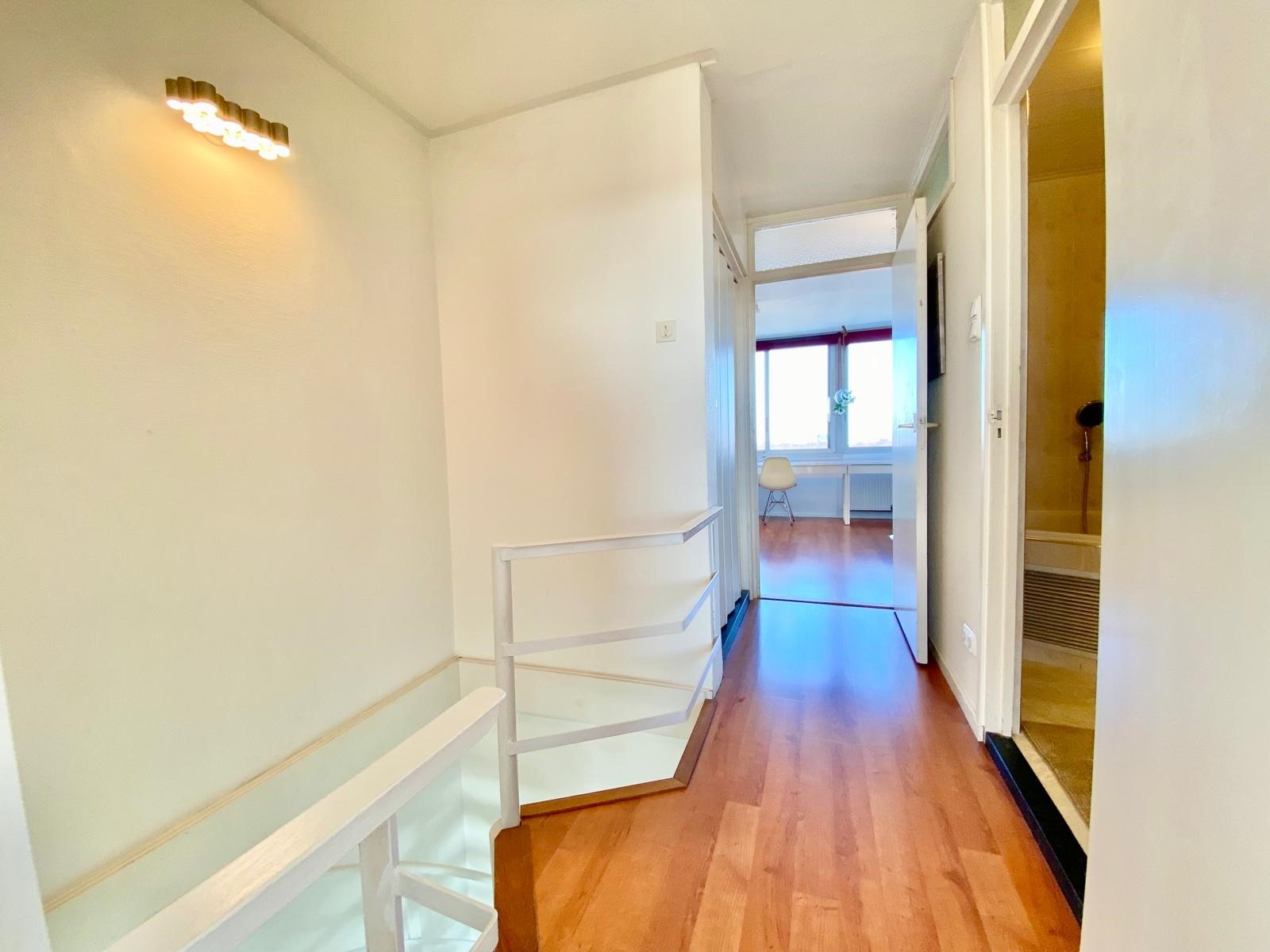On the 10th and 11th floors of a neatly maintained apartment complex with elevators, we find this beautiful 2-bedroom maisonette apartment. We enter the spacious living room with an open kitchen, equipped with a variety of built-in appliances. Through the lounge area we reach the balcony with automatic sun blinds and a beautiful unobstructed view over the Sloterplas!