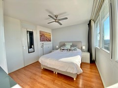 Through the internal staircase, we reach the 11th floor. The 2 bedrooms are located here and we also find a spacious bathroom with a luxurious whirlpool-bath, shower, toilet and sink. We also find a laundry/storage room on this floor. The bedrooms are both equipped with double beds and sufficient cupboard space, the complete house is delivered furnished as shown.