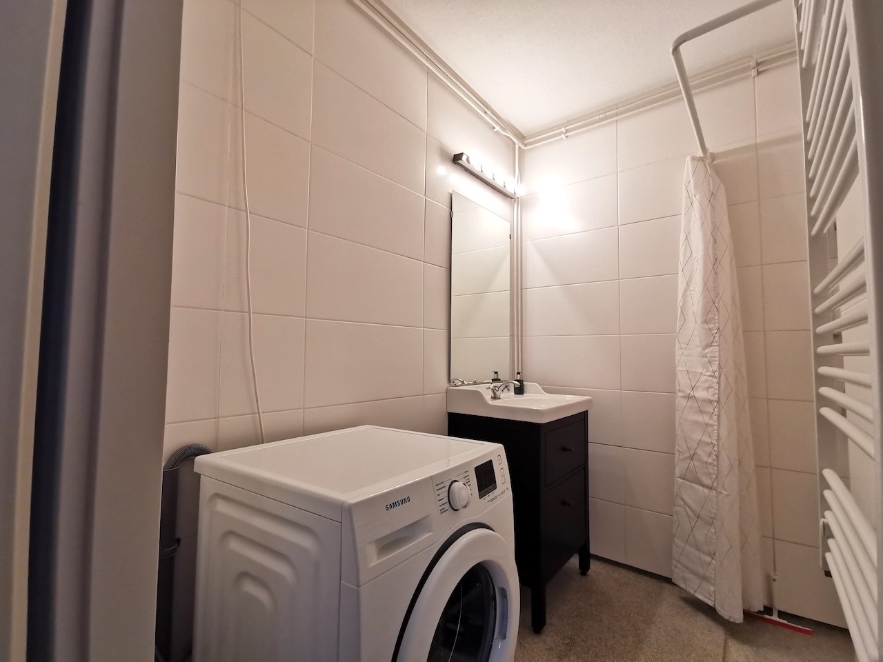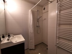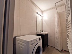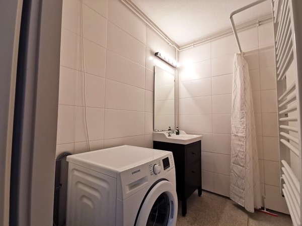 The bedroom is spacious and furnished with a comfortable double bed and a spacious wardrobe. Finally, we find a bathroom with a walk-in shower, sink with washbasin and a washing machine in the house. The house will be delivered fully furnished and will be available soon, so come and have a look!