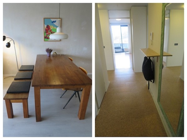 All rooms in the apartment can be reached via the entrance hall on the 6th floor. You enter the living room and immediately notice the large windows. This allows a lot of natural light to enter the house, making it a wonderful place to stay. The living room is neatly finished with a laminate floor and furnished with a dining room table and luxurious sofa. You enter the balcony through the living room.