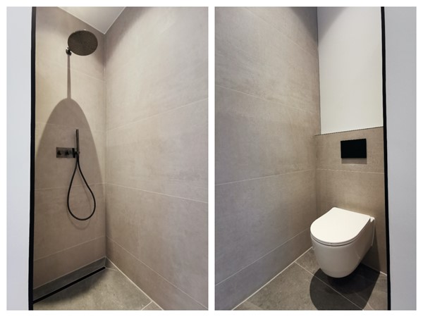 This apartment has recently been completely renovated with high quality modern finishes. Upon entering you will find a modern toilet. The spacious living room has a beautiful herringbone floor and a luxurious open kitchen in a matte anthracite shade, complete with high-quality built-in appliances. The first bathroom has a sink, toilet and spacious walk-in shower with contemporary accents. The spacious master bedroom has its own en-suite bathroom with walk-in shower, sink and toilet. The second bedroom is also spacious. The terrace/patio is located at the rear and is accessible via sliding doors from both bedrooms.
