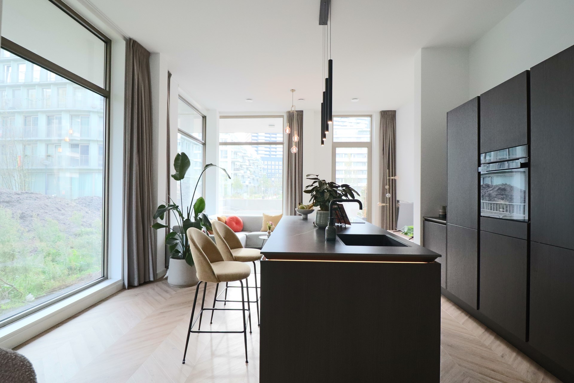 Spacious and luxury newly built apartment of 106m2 with very high ceilings (3.30 meters) and a lot of natural light. The apartment is located on walking distance from shops, supermarket, bars, restaurants and the ferry. The apartment is easy to reach by public transport and by car and you only have to take the ferry or metro to reach the city centre of Amsterdam. At the basement there is a private parking spot available.