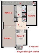 Room 1: approx. 10 m² with uPVC window frames (HR++ glass) with a door to a private balcony of approx. 2 m² and 2 built-in wardrobes. €685 per month rent and €15 service charge.