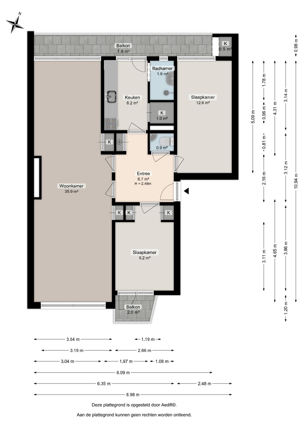 Room 1: approx. 10 m² with uPVC window frames (HR++ glass) with a door to a private balcony of approx. 2 m² and 2 built-in wardrobes. €685 per month rent and €15 service charge.
