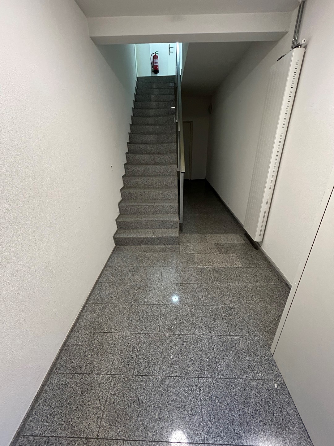 Portaal 3,10 x 2,15 met laminaatvloer, deur naar badkamer en berging.
