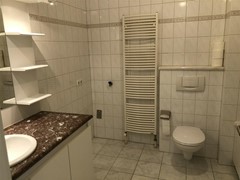 Badkamer: voorzien van ligbad, wastafel met meubel, spiegel en inbouwverlichting, 2e toilet en wasmachine-aansluiting, mechanische afzuiging. Vloer en wanden zijn voorzien van nette lichte tegels.