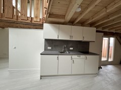 Compleet nieuwbouw appartement met woonkamer met patio buitenruimte, open keuken, entresol met slaapkamer en badkamer.