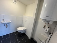 Tussen de patio en de woonkamer zit de toiletruimte en de wasruimte met de elektrische boiler