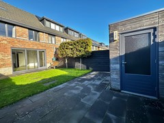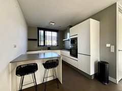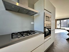 De moderne open keuken van bijna 10 m² is uitgerust met een kookeiland, lang werkblad, inductiekookplaat, combi-oven, vaatwasser en koelkast, ideaal voor kookliefhebbers. Vanuit de woonkamer is er toegang tot de ruime achtertuin met achterom en een externe berging, perfect voor fietsen of tuingereedschap.