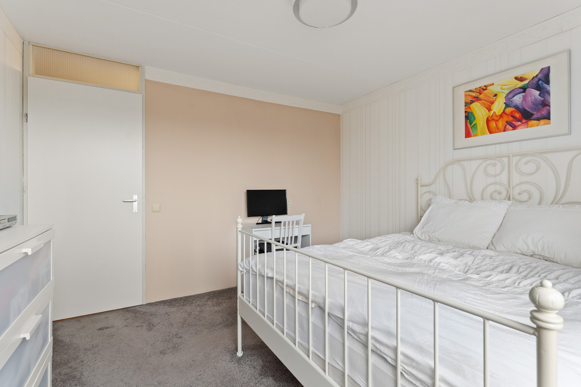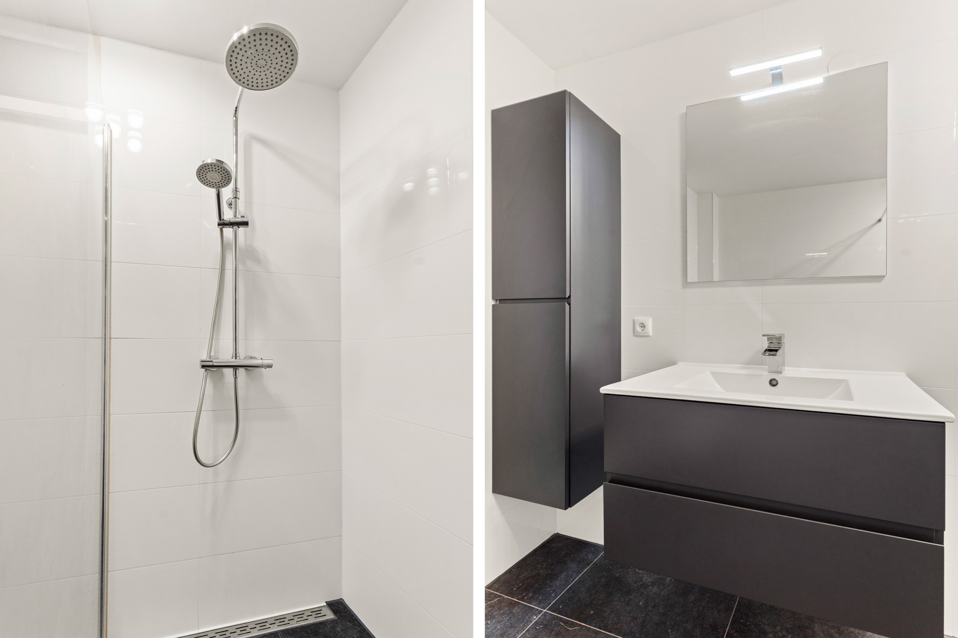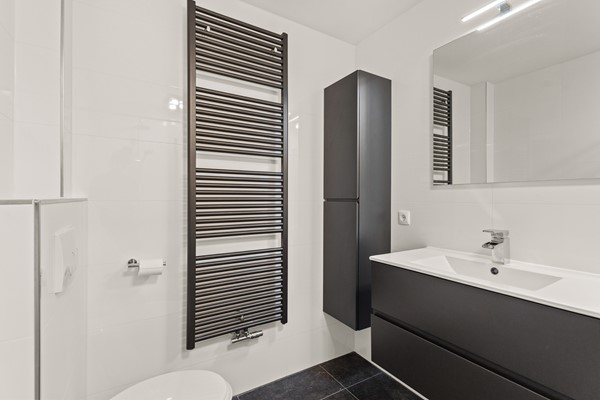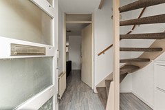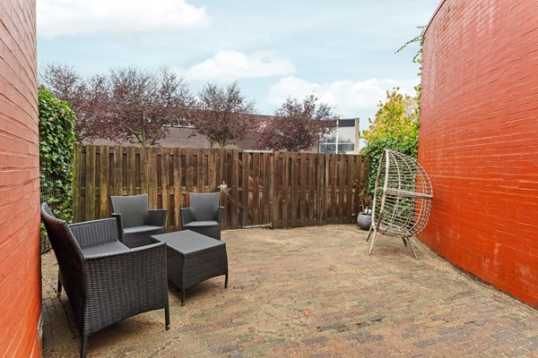 Op de verdieping bevinden zich drie goed bemeten slaapkamers, een ruime overloop en de vernieuwde badkamer met inloopdouche, vrijhangend toilet en wastafelmeubel. Vanuit de achterzijde is toegang tot het zonnige dakterras met uitzicht op de achtertuin – een heerlijke plek om te ontspannen. De voordeur bevindt zich aan het hofje, parkeren kan ruimschoots in de straat aan feitelijk de achterzijde van de woning.