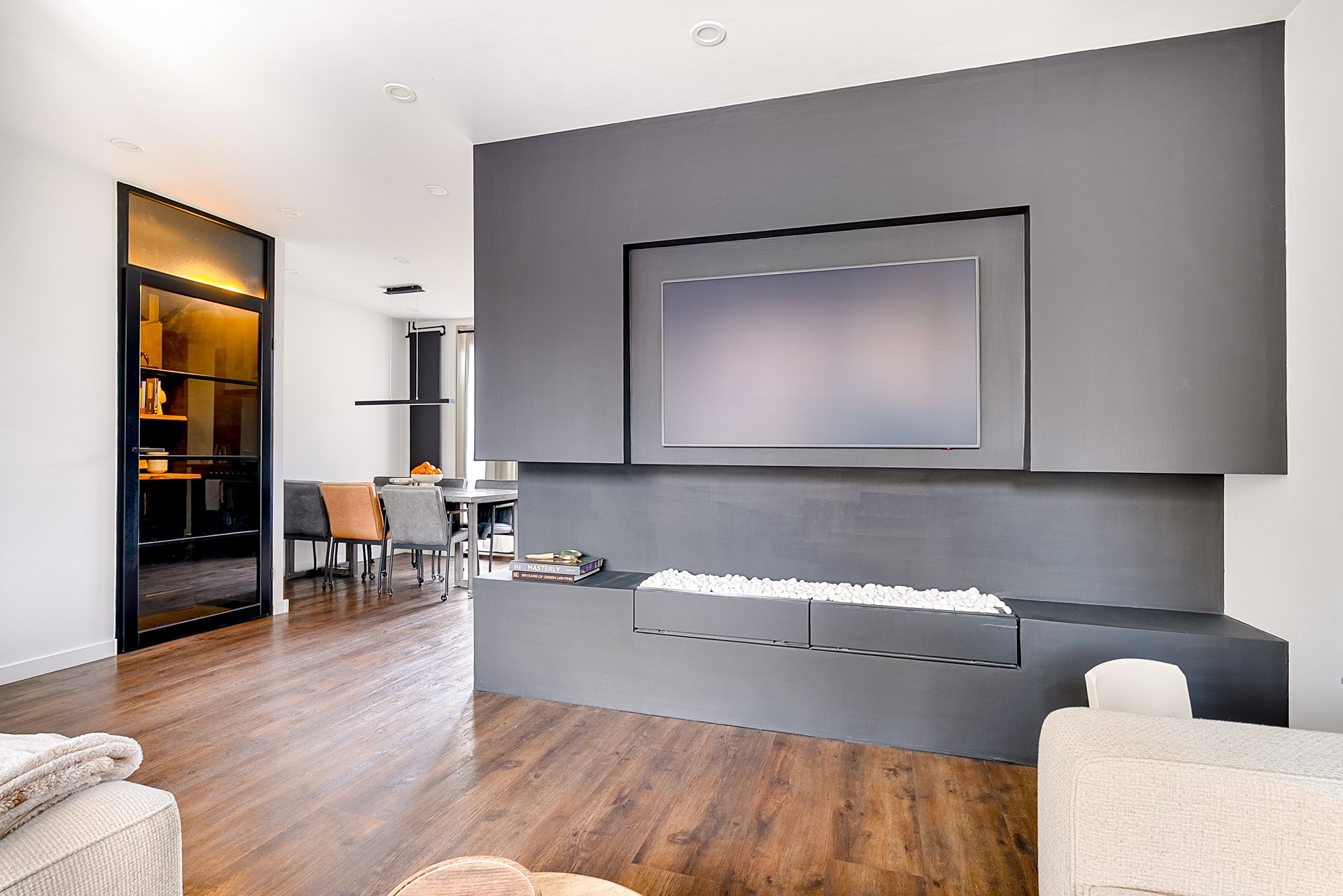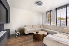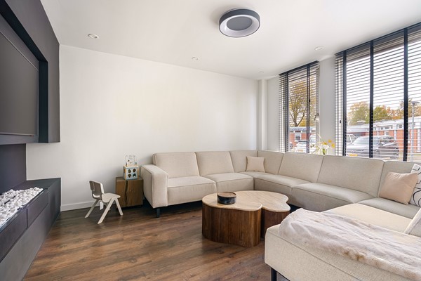 De volledige begane grond is voorzien van een PVC vloer en de wanden en plafonds zijn glad gestuct. De inbouwspots in het plafond zorgen voor een fijne en prettige sfeer in de avonduren.