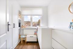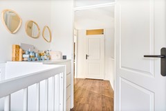 Op de eerste verdieping vind je 3 slaapkamers. De gehele verdieping is voorzien van een PVC vloer en is wederom volledig glad gestuct. Op deze verdieping zijn meerdere inbouwkasten aanwezig. Deze zullen allemaal in de woning achterblijven.