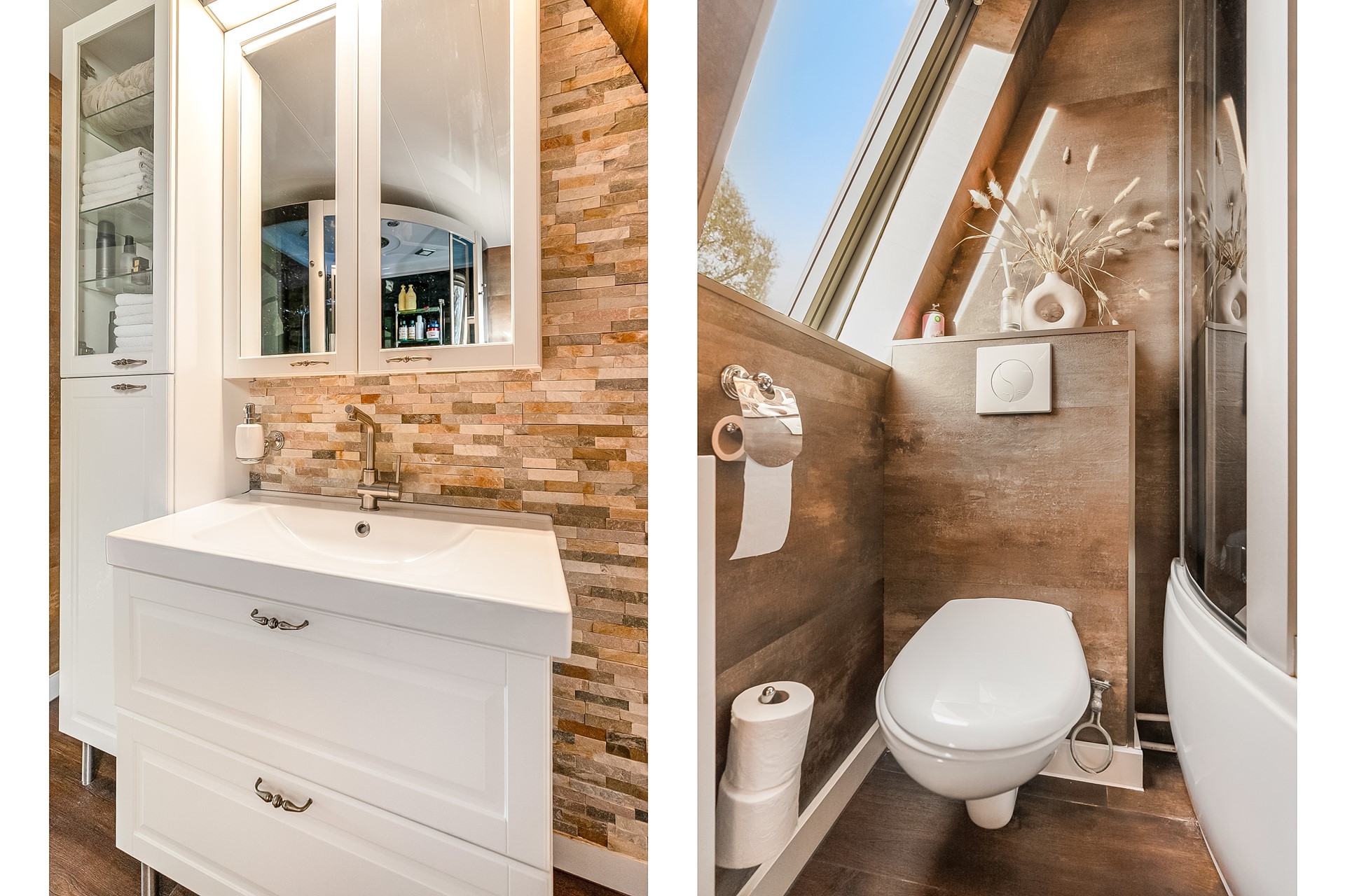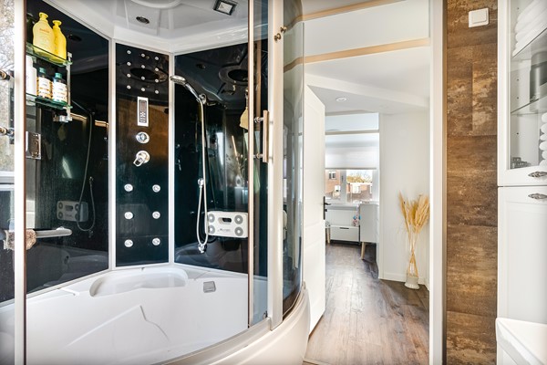 De badkamer is in 2020 vernieuwd en voorzien van een wastafel met meubel, een tweede toilet en een zeer luxe bad/douche combinatie met diverse functies.
