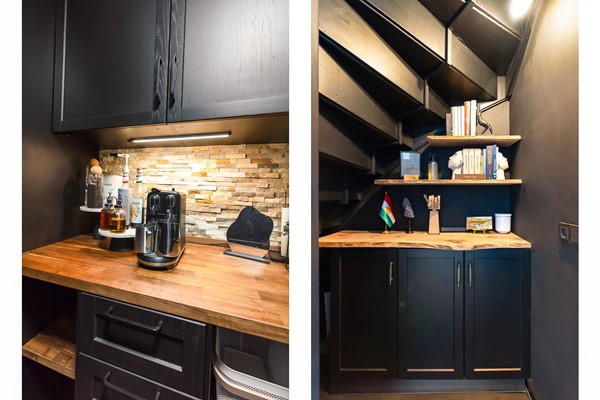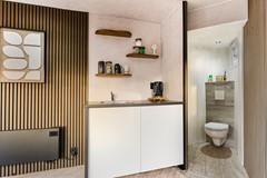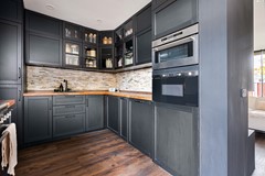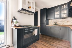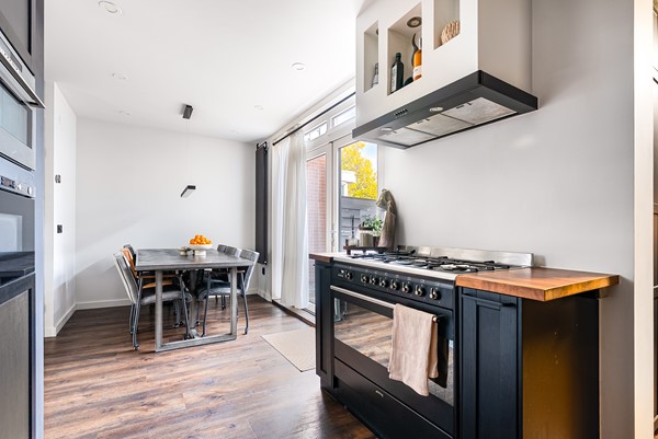 De keuken is aan de achterkant gelegen en van alle gemakken voorzien. De keuken is in 2020 geplaatst en is tevens uitgebreid door het betrekken van de naastgelegen berging. Deze ruime ‘bijkeuken’ maakt het plaatje compleet. De keuken/bijkeuken is voorzien van de volgende inbouwapparatuur: Koelkast, vriezer, oven, vaatwasser, magnetron en een prachtig fornuis (ter overname). Er is ook een leuke koffiecorner aanwezig!