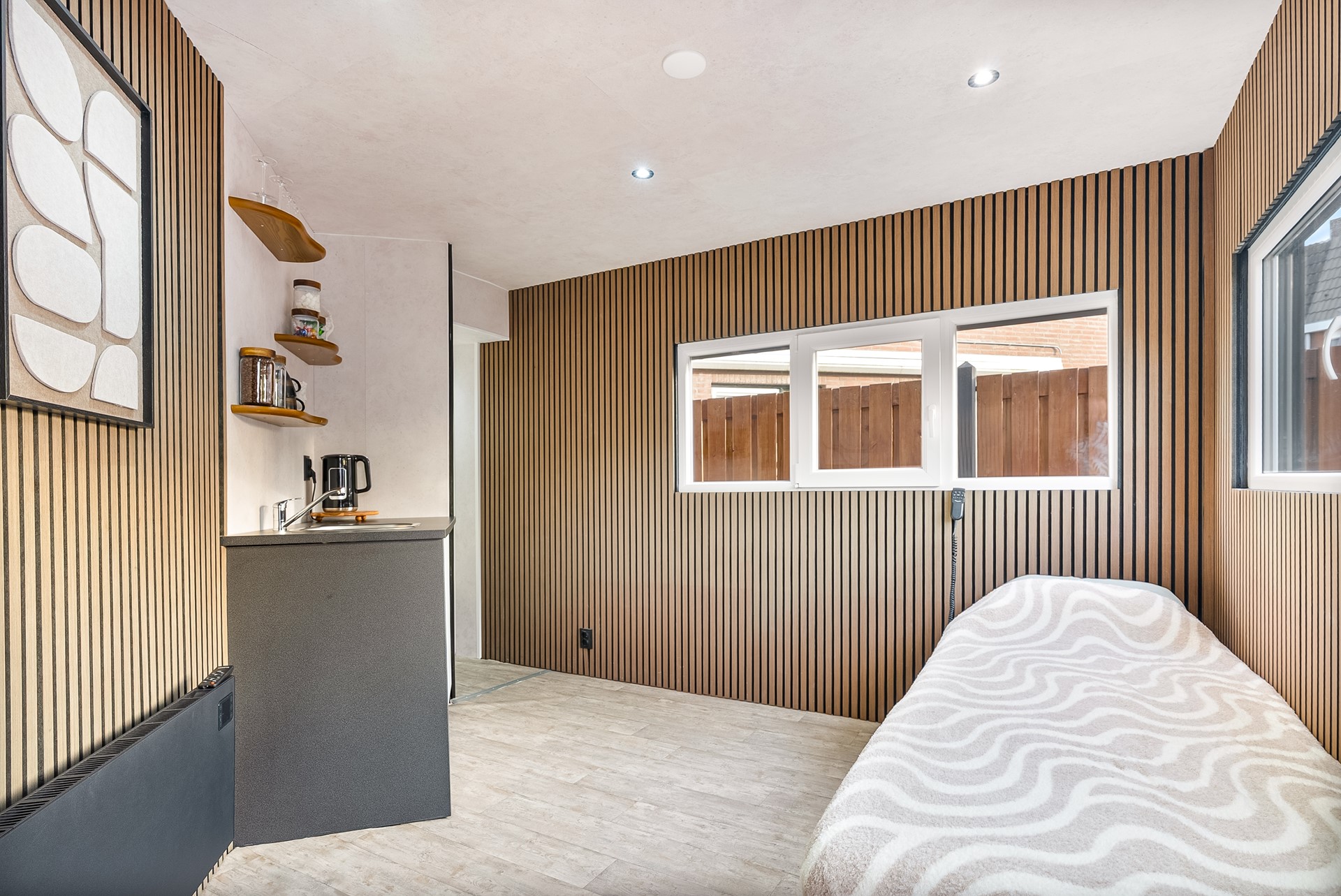 Laat je verrassen door de EXTRA BIJGEBOUWDE KAMER! Deze ruimte is perfect in gebruik te nemen als logeerkamer, werkkamer, hobbykamer, kantoor aan huis of misschien zelfs te verhuren als werkplek.