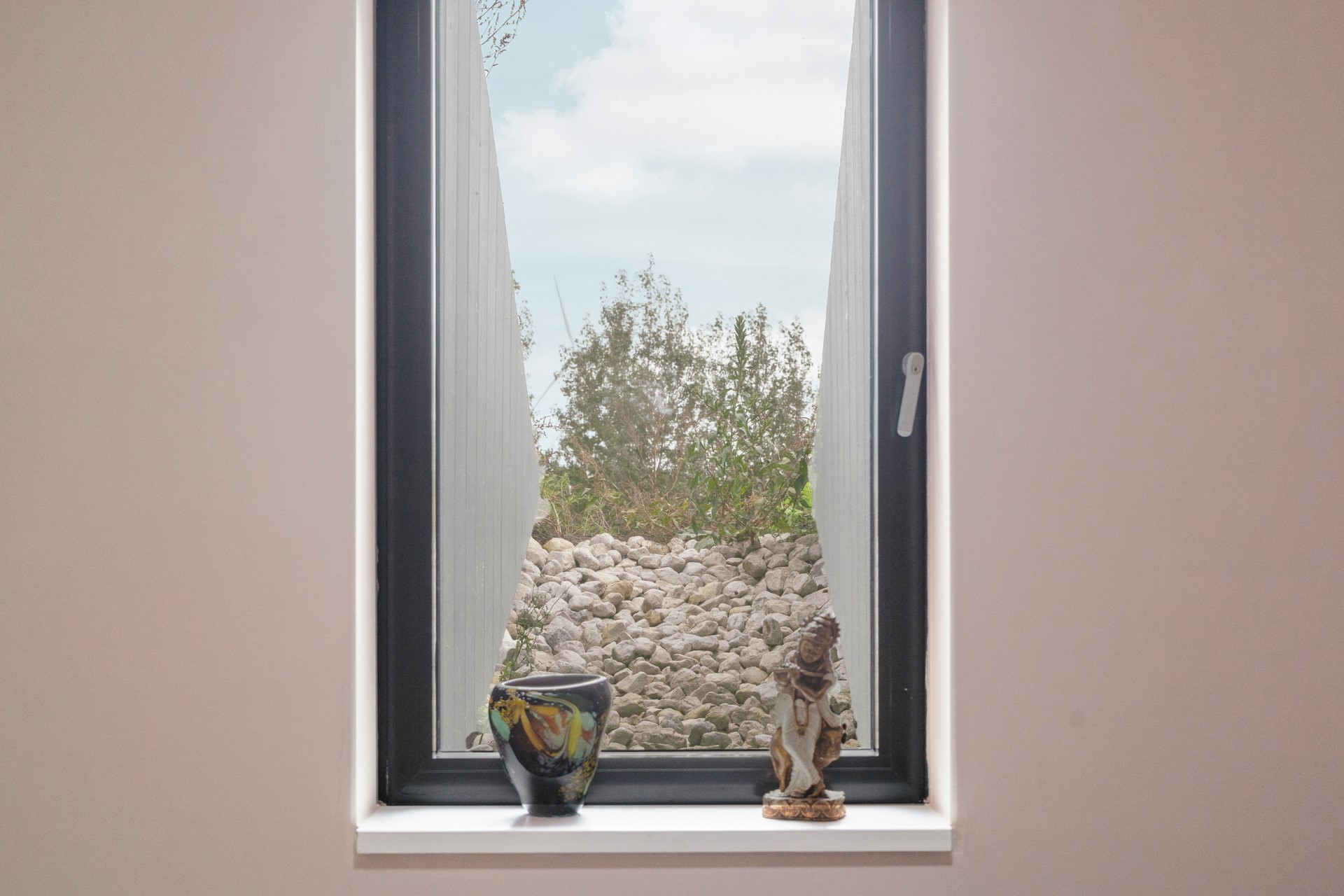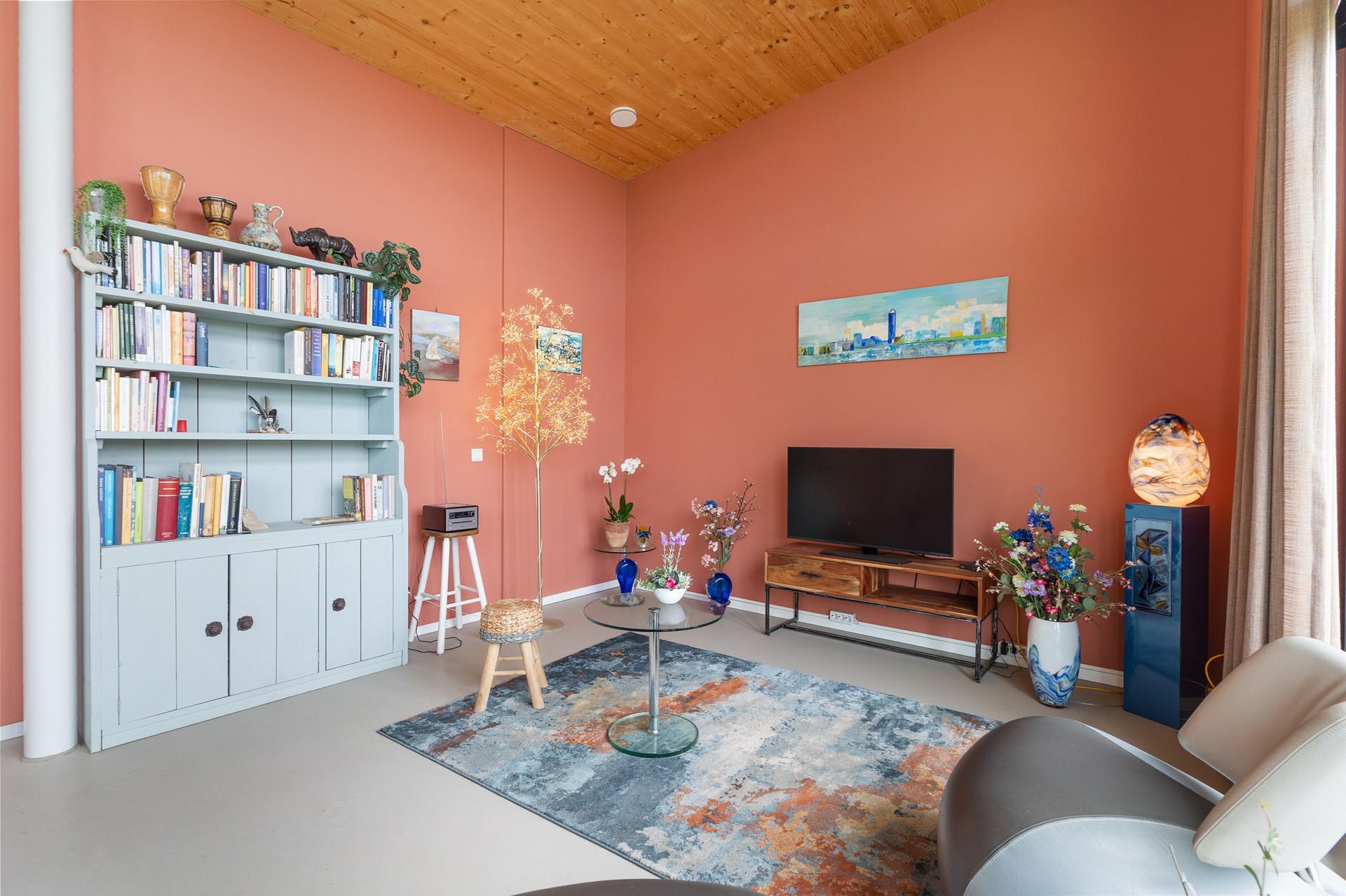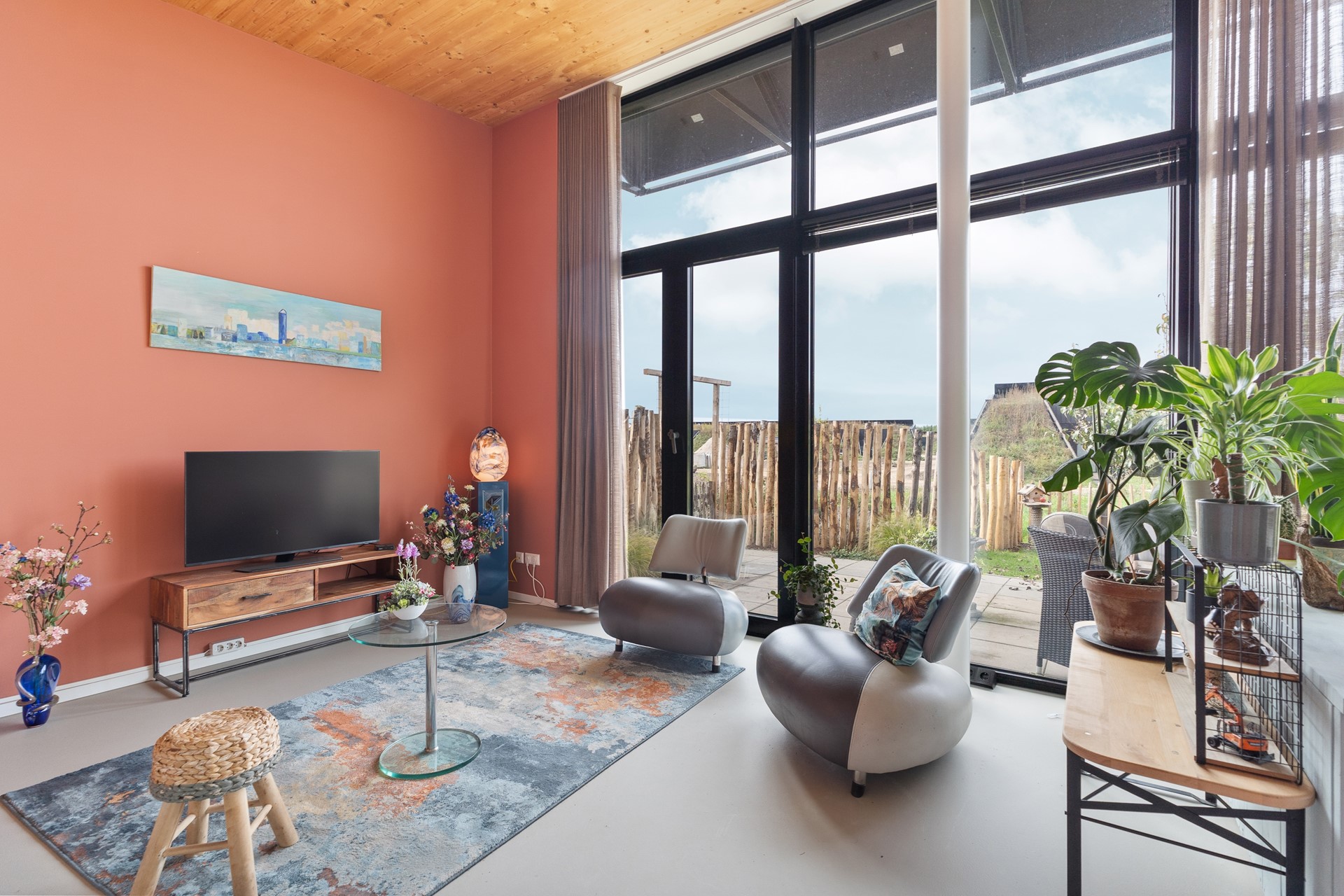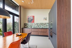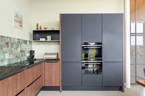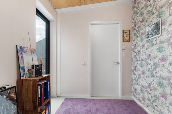 De woning is volledig gelijkvloers en beschikt over een epoxy vloer met vloerverwarming en -koeling, wat zorgt voor een constant aangenaam binnenklimaat. De luxe Duitse keuken met Siemens Studioline-apparatuur, vaatwasser, combi-oven en normale oven, geïntegreerde afzuiging en Quooker sluit naadloos aan bij de stijlvolle inrichting. De badkamer is ingericht met een ligbad, ruime inloopdouche en modern wastafelmeubel. Twee goed ingedeelde slaapkamers bieden flexibiliteit voor logees, werkruimte of hobby. In de technische ruimte bevinden zich de warmtepomp, het buffervat en het WTW-systeem – zorgvuldig weggewerkt, maar essentieel voor het energiezuinige karakter van de woning.