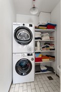 The fixed stairs provide access from the hallway to the surprisingly large landing on the first floor. It is connected to three fairly large bedrooms and two 'wet' rooms: one being the bathroom and the other a conveniently situated closet-like room for a washing machine and dryer. The bathroom is fully tiled and equipped with a walk-in shower, a generous bath and a sink. The bedrooms are finished with laminate and the 'wet' rooms with adequate tiles.