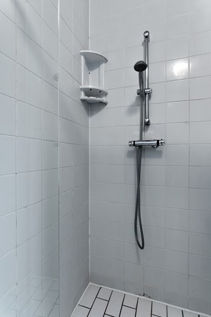 Going up on the second fixed staircase there is another vast floor. It comes with a landing containing the central heating system (neatly situated in a cupboard) and storage space and acces to two more bedrooms. The bedrooms come equipped with both skylights and 'regular' windows on either side of the house making the attic surprisingly well-lit with lots of natural light during the day. The attic is complete with a generous amount of storage space underneath the sloping walls alongside the entire side of the house.