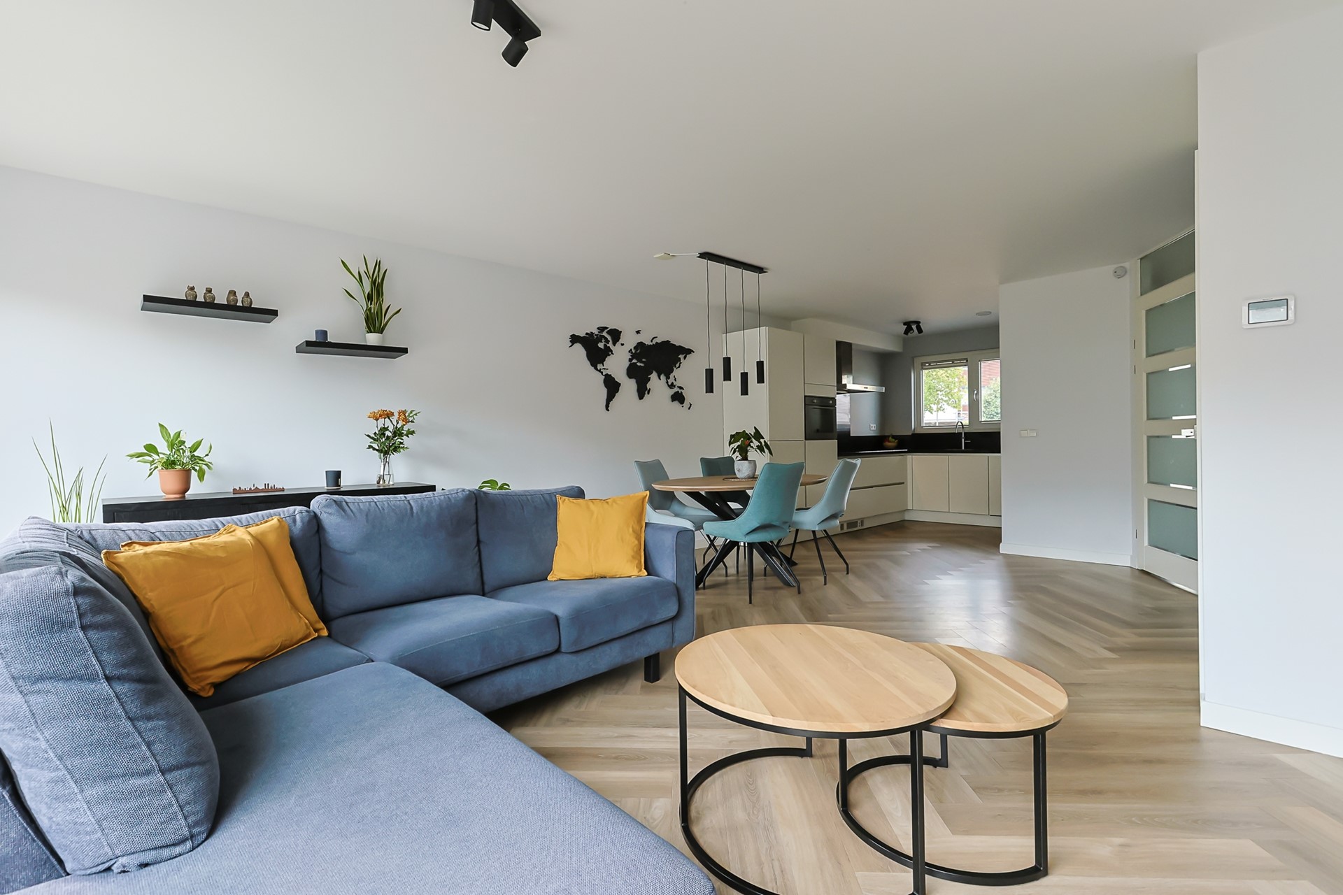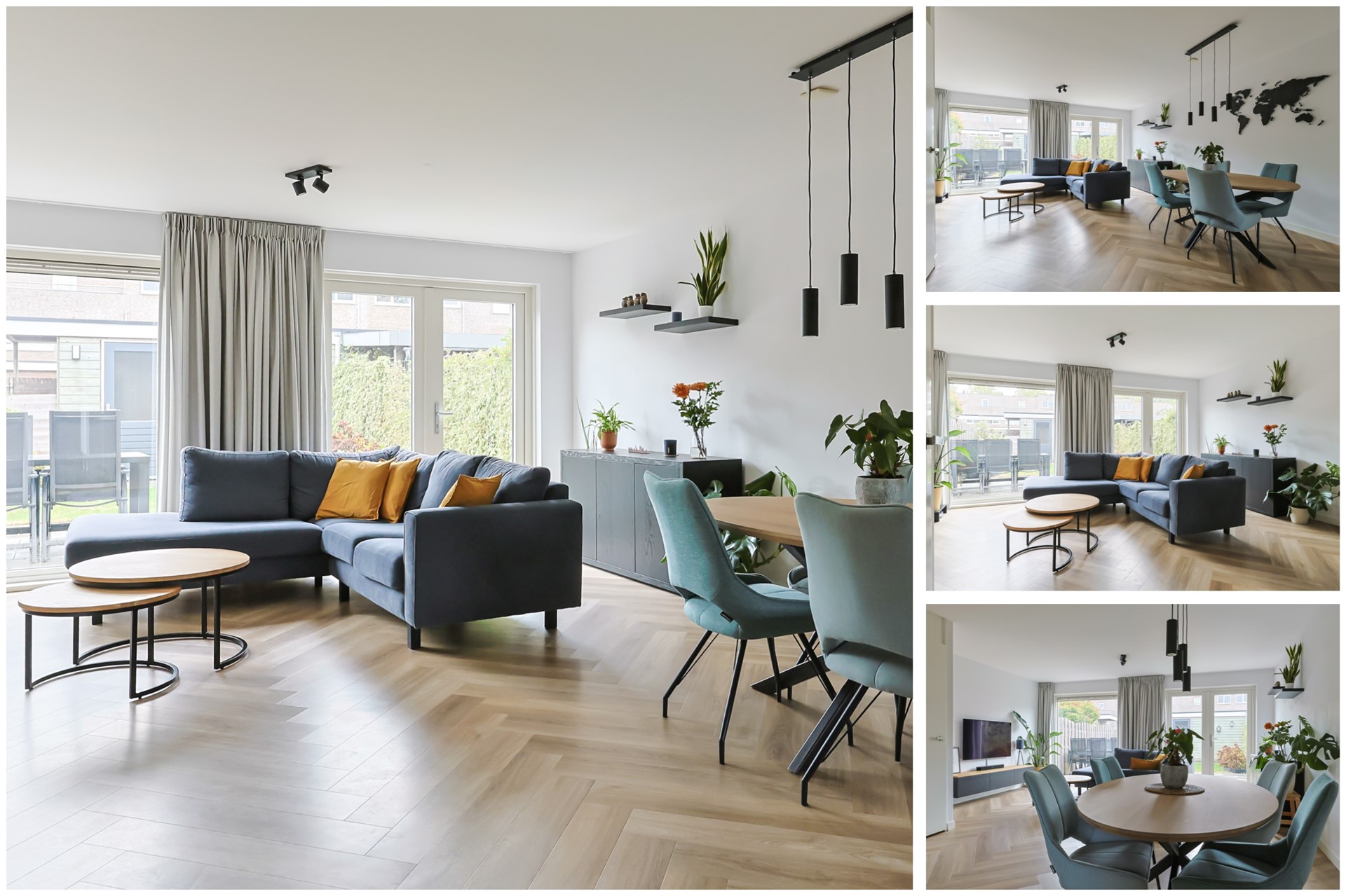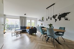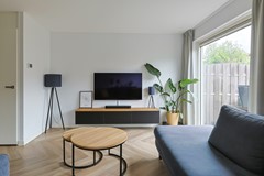 • Recent gerenoveerde woonkamer met vloerverwarming, een visgraatvloer en kunststof kozijnen