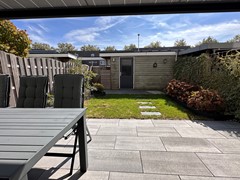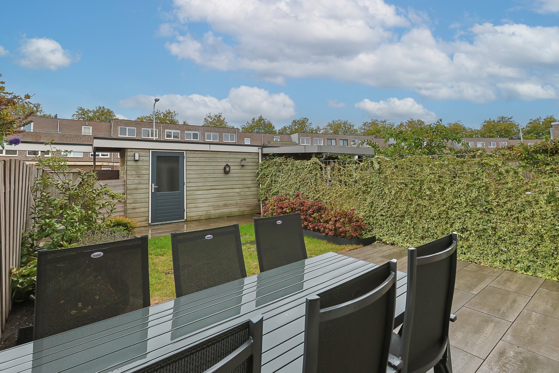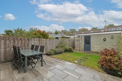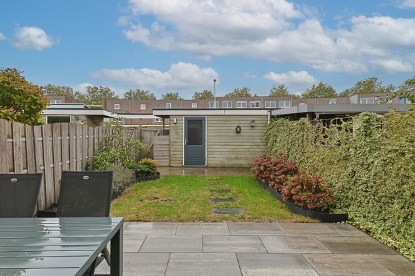 De achtertuin is onderhoudsvriendelijk aangelegd met sierbestrating, een ruime berging en achterom. Door de ligging op het zuiden geniet u hier volop van de zon. Op warme en zonnige dagen zorgt het elektrische zonnescherm voor schaduw. Dankzij de 10 zonnepanelen wekt u bovendien uw eigen energie op.