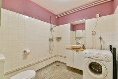 De badkamer is voorzien van een douche, wastafel, toilet, aansluiting voor wasmachine en droger.