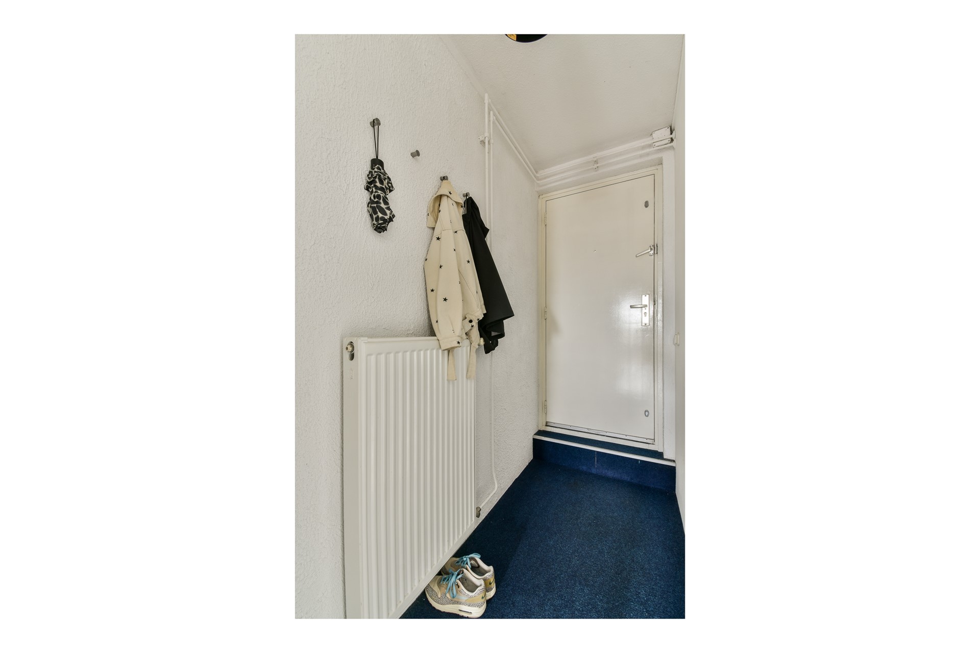 De entree van de woning bevindt zich op de vierde (bovenste) verdieping. Vanuit de hal heeft u toegang tot alle vertrekken.