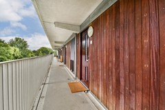 Via de afgesloten gezamenlijke entree krijg je toegang tot het trappenhuis en de lift die je naar de tweede verdieping brengen. Vanaf de galerij kom je bij de voordeur van het appartement. De centrale hal verbindt alle ruimtes in de woning.