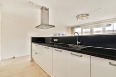 De open keuken (2010) is modern uitgevoerd en uitgerust met diverse inbouwapparatuur (2024), waaronder een inductiekookplaat, afzuigkap, oven, koelkast met vriesvak en een vaatwasser. Aansluitend vind je een praktische wasruimte/berging, direct toegankelijk vanuit de keuken.