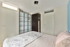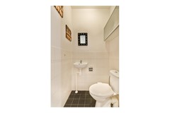 De royale slaapkamer ligt aan de rustige achterzijde van de woning en beschikt over een eigen, en-suite badkamer. Deze is voorzien van een inloopdouche en een stijlvol wastafelmeubel.
