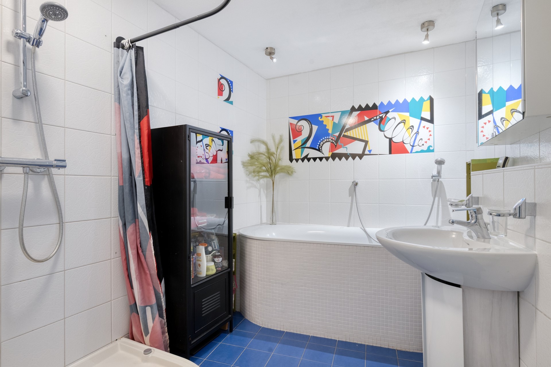 De tweede badkamer op deze verdieping is voorzien van een inloopdouche, wastafelmeubel en toilet.