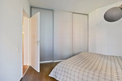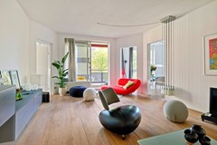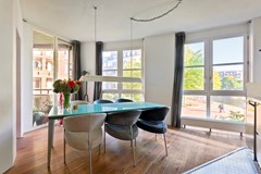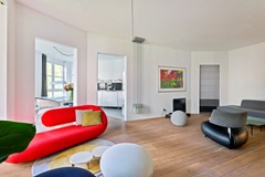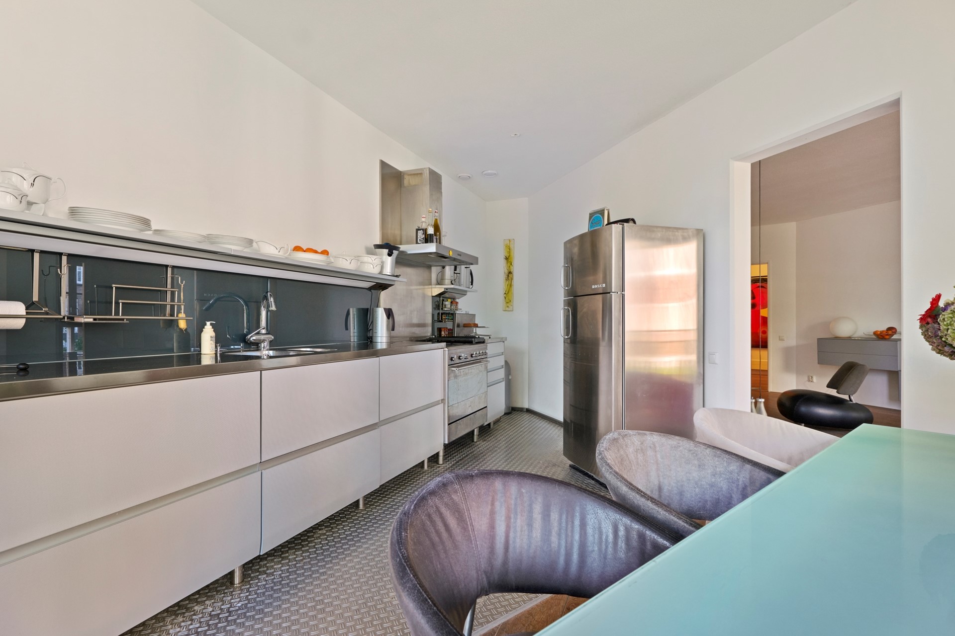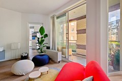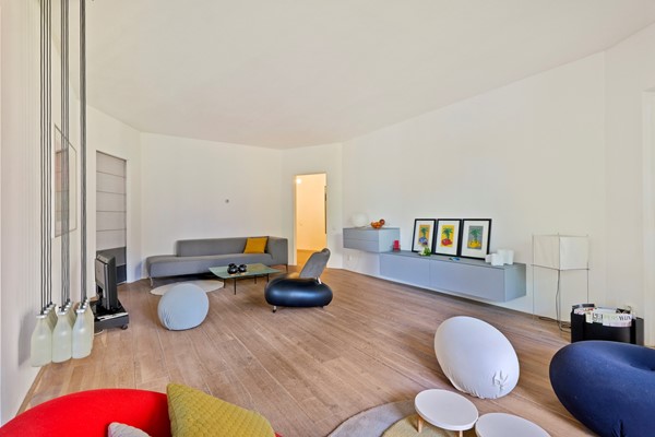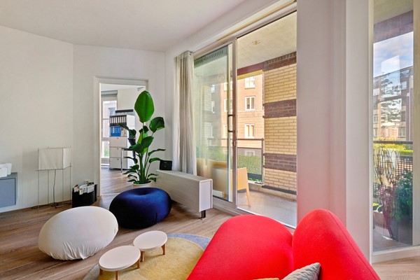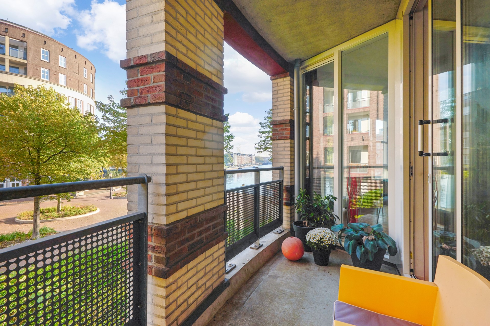 At the front, you’ll find the modern living room – the perfect place to relax and recharge after a busy day, with the added bonus of a wonderful view over the canal. From here, you can step directly onto the balcony, where you can enjoy the same beautiful scenery.