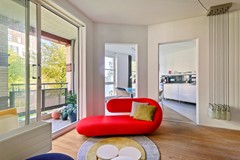The Meandercomplex, where the apartment is situated, was designed by architect Rob Krier and awarded the Urban Land Institute Award. The complex is car-free and child-friendly, with amenities such as a primary school, playground, library, gym, and several supermarkets literally around the corner.