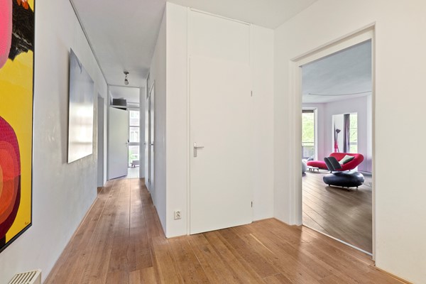 Via the elevator or the well-maintained staircase, you reach the entrance of the apartment on the first floor. A spacious hallway provides access to almost all rooms.