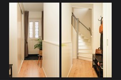 Via de entree kom je in de hal, waar direct de sfeer van het huis voelbaar is. Langs een ruime vaste kast, vernieuwde meterkast en een modern toilet loop je zo door naar de royale woonkamer. Vanuit de hal is er ook toegang tot de kelder.
