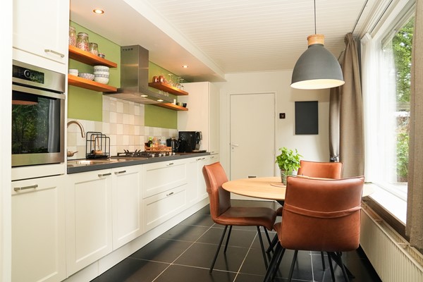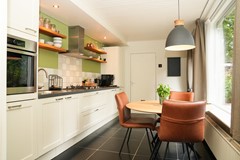 De keuken  is in 2015 vernieuwd en is uitgerust met diverse inbouwapparatuur. Er is ruimte voor een eettafel en via de buitendeur is het terras bereikbaar.