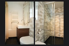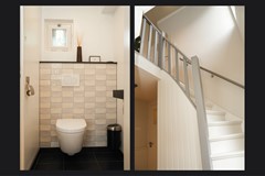 Via een dichte houten trap kom je op het 1e niveau van de eerste verdieping waar je een compacte, functionele badkamer vindt (vernieuwd in 2016), compleet met douche, wastafelmeubel, wandcloset en sierradiator.