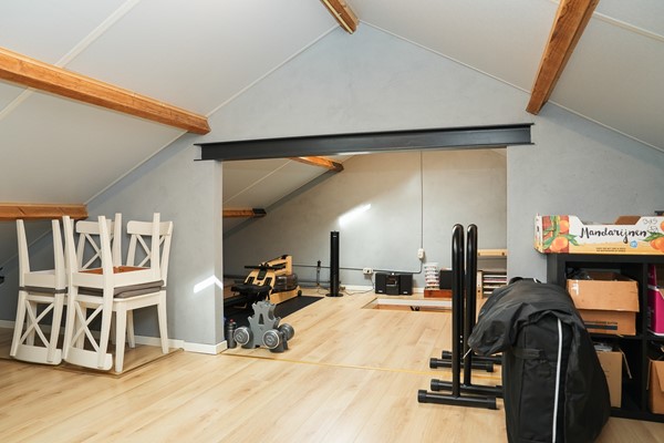 Vanuit de tussenruimte kan je via een vlizotrap naar de verrassend ruime zolderverdieping, voorzien van twee dakramen. Of je nu opbergruimte zoekt of een plek voor een hobby, hier zijn volop mogelijkheden.