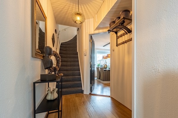 Je komt binnen via de entree en voelt het meteen: hier klopt het gewoon. Vanuit de hal loop je door naar de gezellige woonkamer, een fijne en lichte leefruimte waar je direct een warm en huiselijk gevoel krijgt. Dankzij de prettige indeling is er volop ruimte voor zowel een comfortabele zithoek als een gezellige eethoek. De grote ramen zorgen voor veel daglicht en maken dit een heerlijke plek om thuis te komen en te ontspannen.