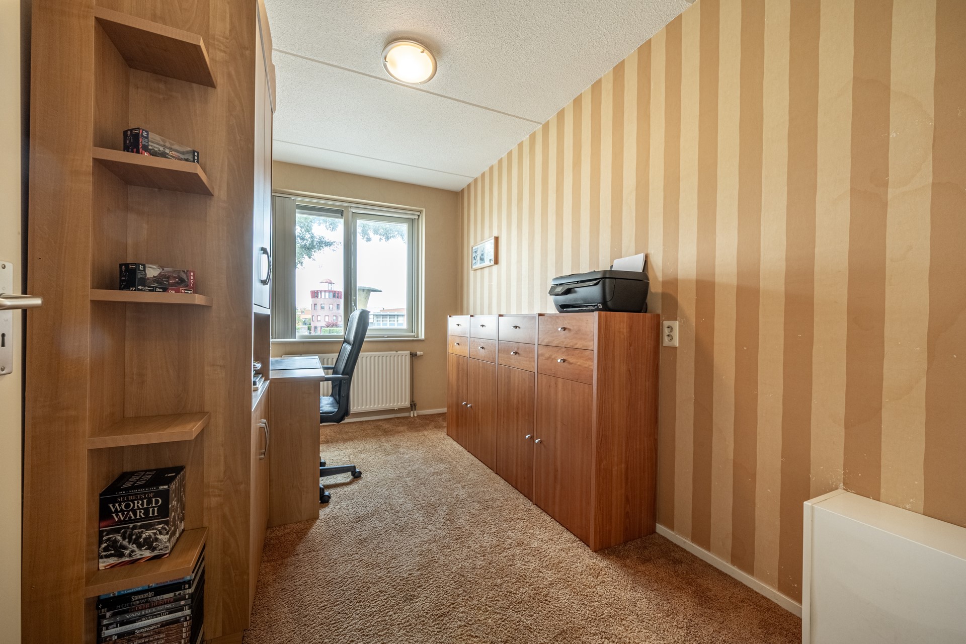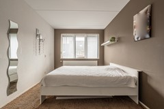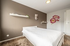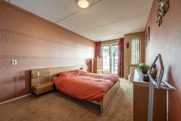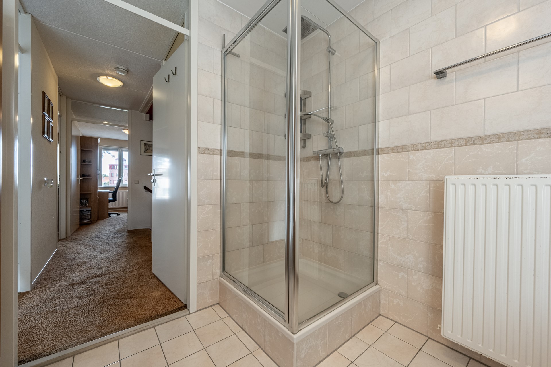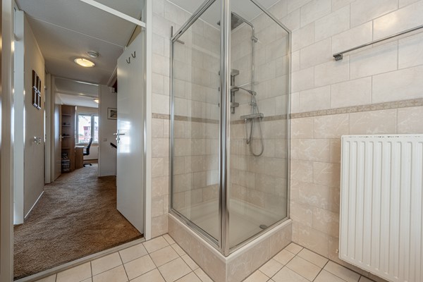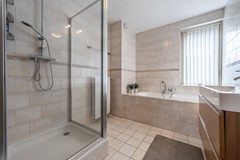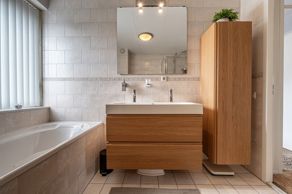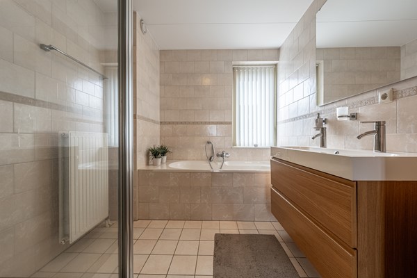 De overloop geeft toegang tot drie ruime slaapkamers, waarvan twee aan de voorzijde en een aan de achterzijde van de woning. De nette en volledig betegelde badkamer is uitgevoerd in een lichte kleurstelling en beschikt over een douchecabine, ligbad, handdoekradiator en een dubbele wastafelmeubel met handige kastruimte. Separaat bevindt zich hier een tweede toilet.
