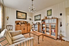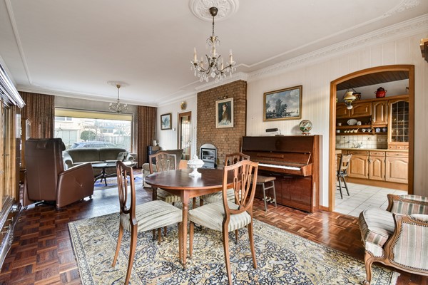 Je komt binnen in de hal met garderoberuimte, meterkast en toilet. Vanuit hier stap je de lichte woonkamer binnen, waar zit- en eetgedeelte op een fijne manier in elkaar overlopen. Grote raampartijen zorgen voor prettig daglicht en een mooi zicht op de tuin.