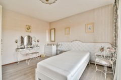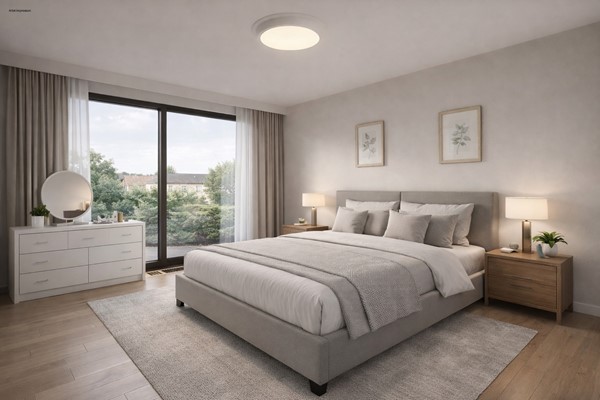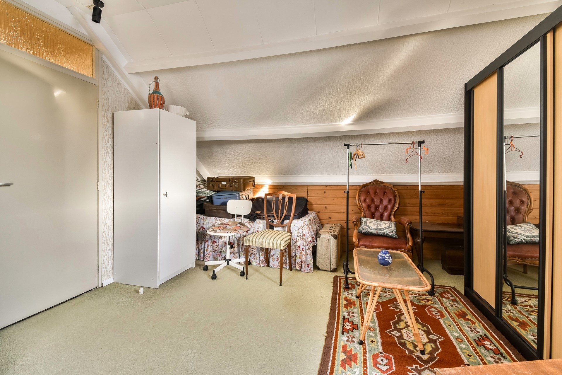 De tweede verdieping verrast met een ruime slaapkamer met extra hoogte en een aparte werk- of hobbykamer. Ook vind je hier praktische bergruimte. Een ideale verdieping voor bijvoorbeeld een master bedroom met werkplek, logeerkamer of tienerverdieping.